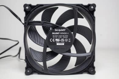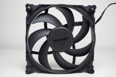Ab Werk kommt das be quiet! Dark Base Pro 901 mit drei vorinstallierten Gehäuselüftern vom Typ be quiet! Silent Wings 4 PWM High-Speed mit einer Rahmenbreite von 140 Millimetern. Der Anschluss erfolgt jeweils über ein 4-Pin-PWM-Kabel. Damit können die Ventilatoren zwischen 300 und 1900 Umdrehungen pro Minute geregelt werden. In Bezug auf das Design bleibt es unspektakulär. Schwarzer Rahmen, schwarzer Rotor und ein schwarzes Logo in der Lüfternabe. Dafür stattet be quiet! aber alle Montagepunkte mit Entkopplern aus Gummi aus.