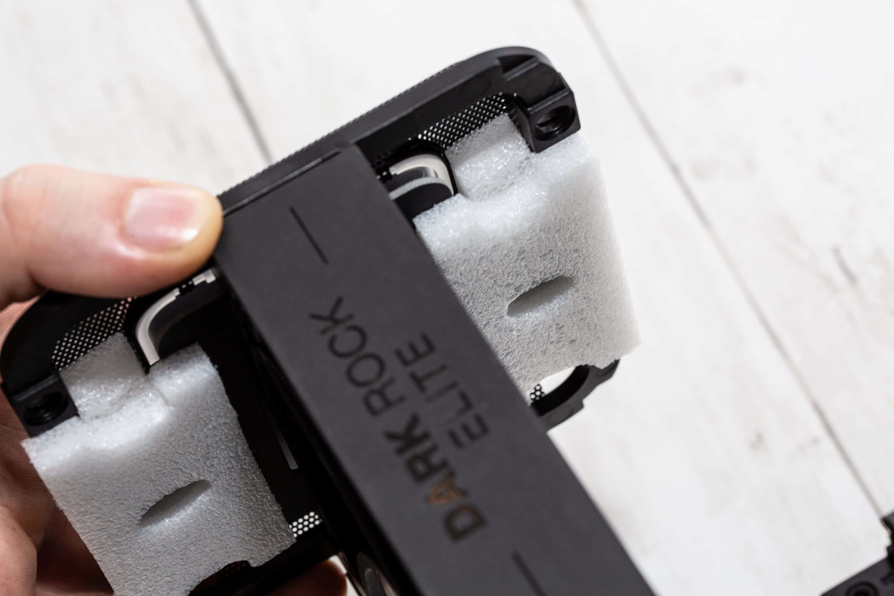 Wenn man die Teile herauszieht, fällt auf, dass ein Schraubendreher mit im Schaumstoff steckt. Dieser ist optimiert auf den Einbau des großen Kühlkörpers. Unter der magnetischen Abdeckung findet sich noch ein etwas festerer Schaumstoffstreifen und das Top-Cover ist mit zwei weiteren Schaumstoffteilen von der Oberseite der Lamellen getrennt. Diese müssen ebenfalls entfernt werden, wie auch der Schutzstreifen auf dem be-quiet!-Logo.