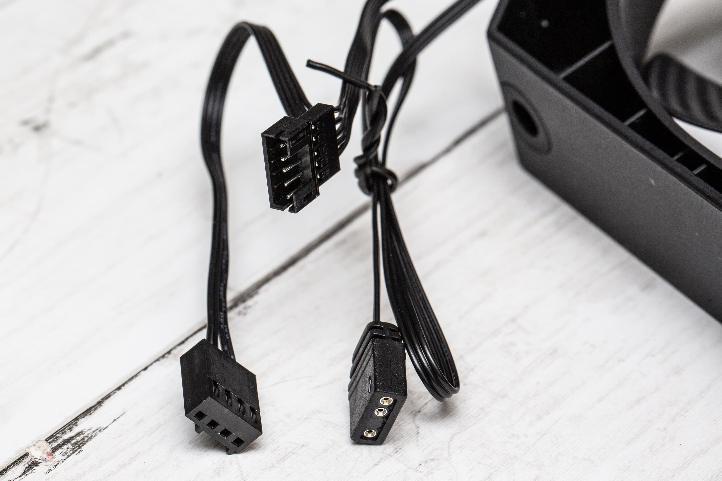 Last but not least steht die Verkabelung an. Der Frontlüfter muss mit dem mittleren Lüfter verbunden werden und dieser kann an den CPU-FAN-Header auf dem Mainboard gesteckt werden. Bei Bedarf und Möglichkeit schließt man den 5V-ARGB-Stecker an. Insgesamt ein sehr simples System.