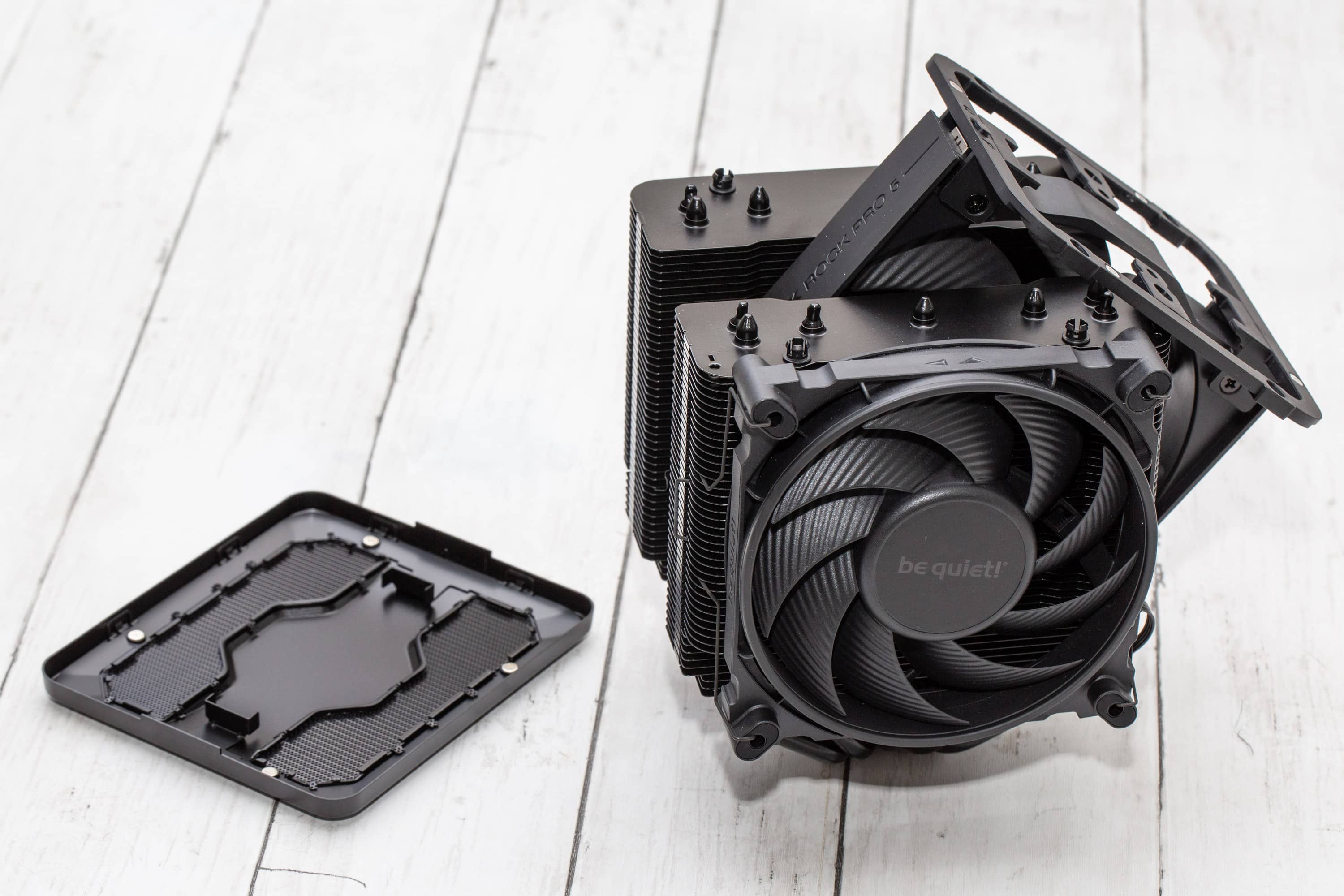 Bei den früheren Generationen waren einige Elemente wiederkehrend. Gleichgeblieben ist, dass der be quiet! Dark Rock Pro 5 noch immer ein Doppeltum-Luftkühler mit dem seit der zweiten Generation Konzept der zwei unterschiedlichen Lüftergrößen ist. Das sind ein 120-mm-Lüfter in der Front und ein 135-mm-Lüfter in der Mitte.