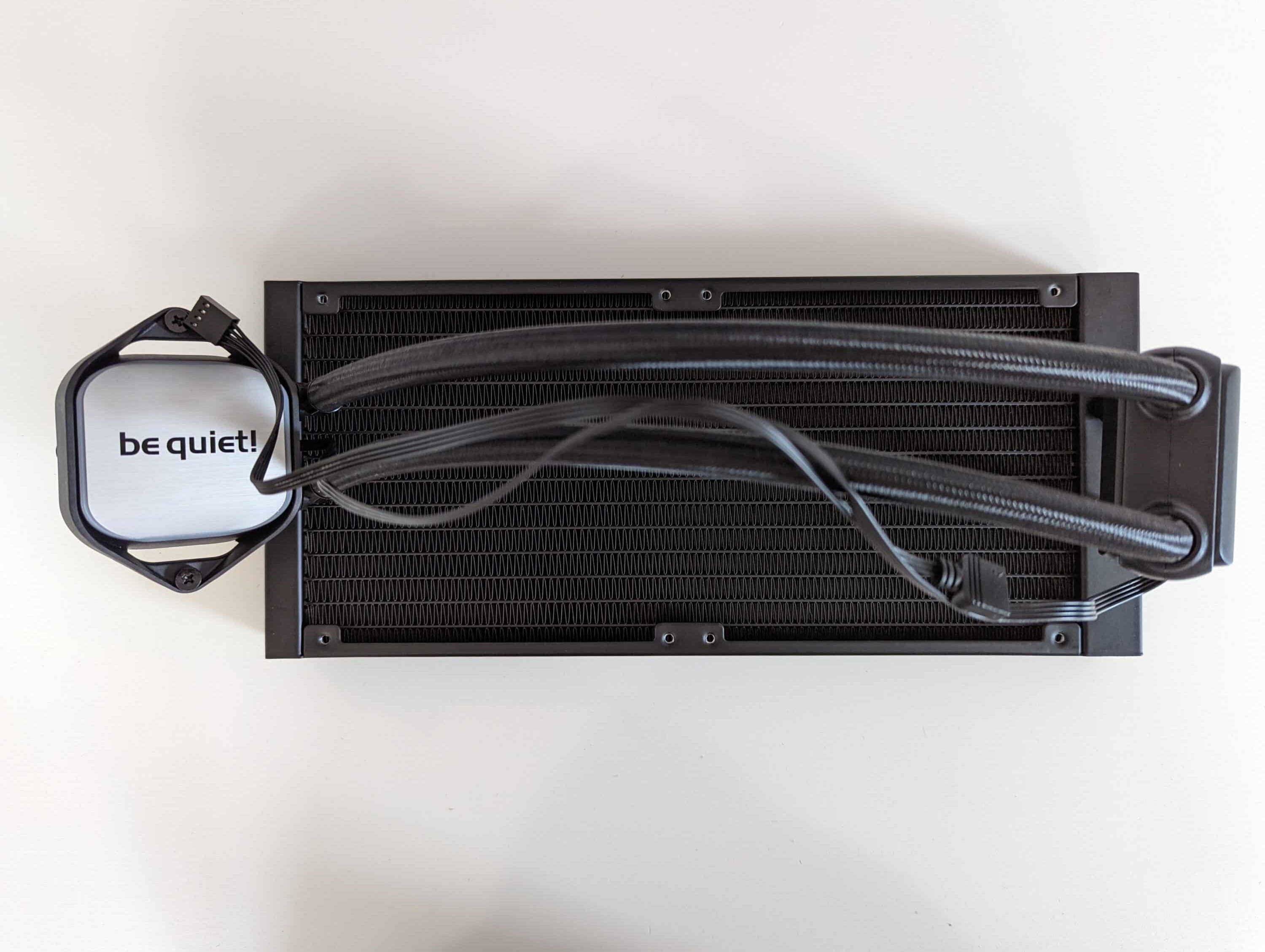 Die Verarbeitungsqualität ist be quiet!-typisch hochwertig. Die Pumpe ist in einer separaten Einheit am Schlauch der AIO verbaut, was eine verbesserte Langlebigkeit verspricht. Gleichzeitig soll dadurch auch die Lautstärke im Vergleich zu anderen Wasserkühlungen reduziert werden. Die verwendeten Lüfter sind extra für den Radiatorbetrieb optimiert. Am Radiator selbst befindet sich ein Nachfüllport, über den bei Bedarf die mitgelieferte Kühlflüssigkeit nachgefüllt werden kann.