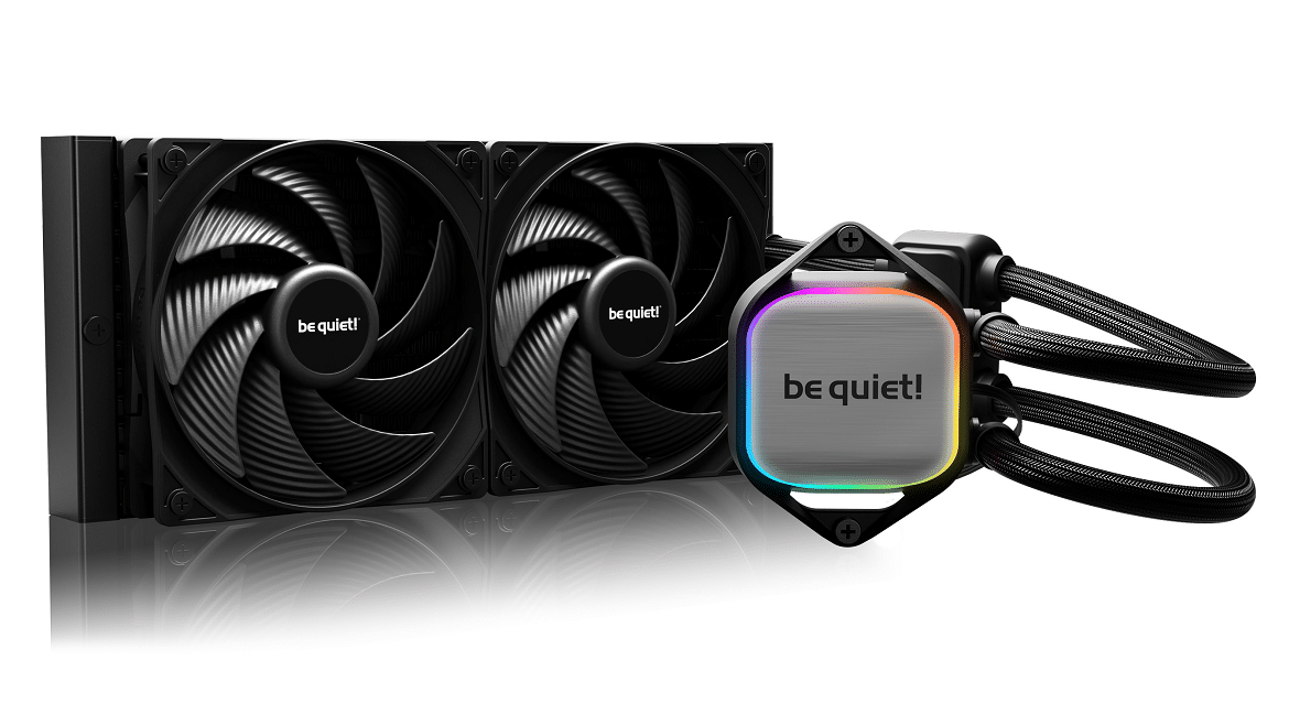 Der Unterschied zwischen der Pure Loop 2 und Pure Loop 2 FX ist dabei recht simpel. Bei der be quiet! Pure Loop 2 kommen Lüfter ohne ARGB-Beleuchtung zum Einsatz, wodurch sich der Preis der Kompaktwasserkühlung um circa €10 bis €20 auf € 96,14 * reduziert. Die neuen Lüfter sind aber auch noch unbekannt. Es handelt sich nämlich um die neuen Pure Wings 3 mit „Closed-Loop-Motor“-Funktion, die auch bei langer Laufzeit und hohen Luftwiderstand starke Drehzahlschwankungen verhindern soll. Zu den weiteren Features der Pure Loop 2 gehören eine doppelt entkoppelte PWM-Pumpe, ein nachfüllbarer Tank sowie eine schlichte Optik inklusive dezenter RGB-Beleuchtung am Kühlblock.