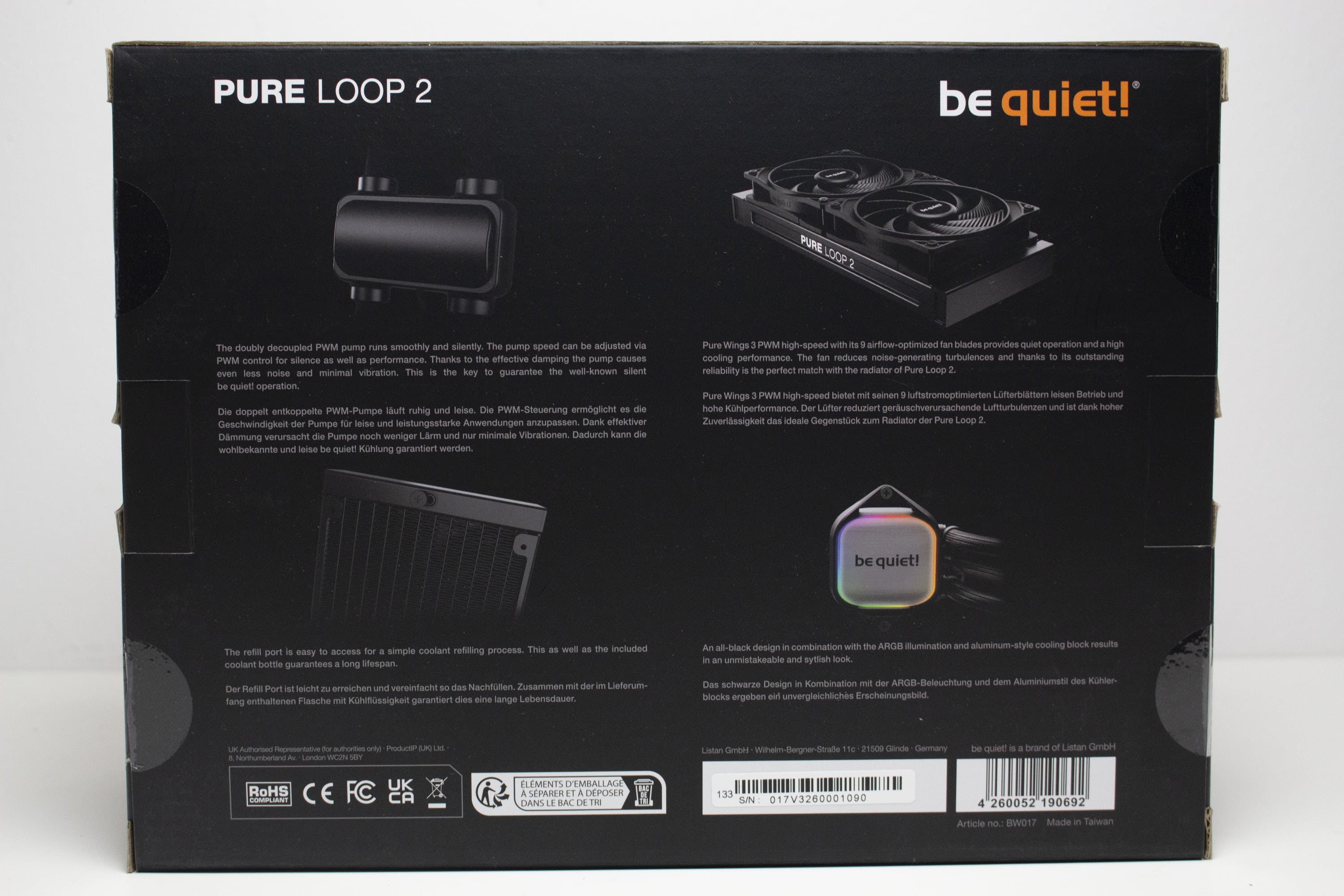 Die be quiet! Pure Loop 2 ist eine performante und hochwertig verarbeitete Kompaktwasserku00fchlung, die mit einer einfach Montage sowie einer schlichten Optik mit einem Hauch RGB daherkommt und zudem wiederbefu00fcllbar ist. Der Preisunterschied zur Pure Loop 2 FX mit ARGB-Lu00fcftern ist derzeit aber nur sehr gering.