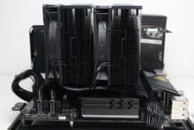 Nun kommen wir aber zu den Punkten, die uns negativ aufgefallen sind. So liefert der be quiet! Pure Rock Pro 3 Black gute bis sehr gute Kühlergebnisse, wenn man ihn ohne Konkurrenz betrachtet. Bezieht man aber ebenjene mit ein, dann sind die erzielten Werte, gemessen am Preis und Größe des Kühlers, äußerst ernüchternd. Auf unserem AMD-Testsystem musste sich der Pure Rock Pro 3 Black noch hinter dem Thermalright Assassin X 120 SE einreihen, der jedoch weniger als die Hälfte des be quiet! Kühlers kostet.