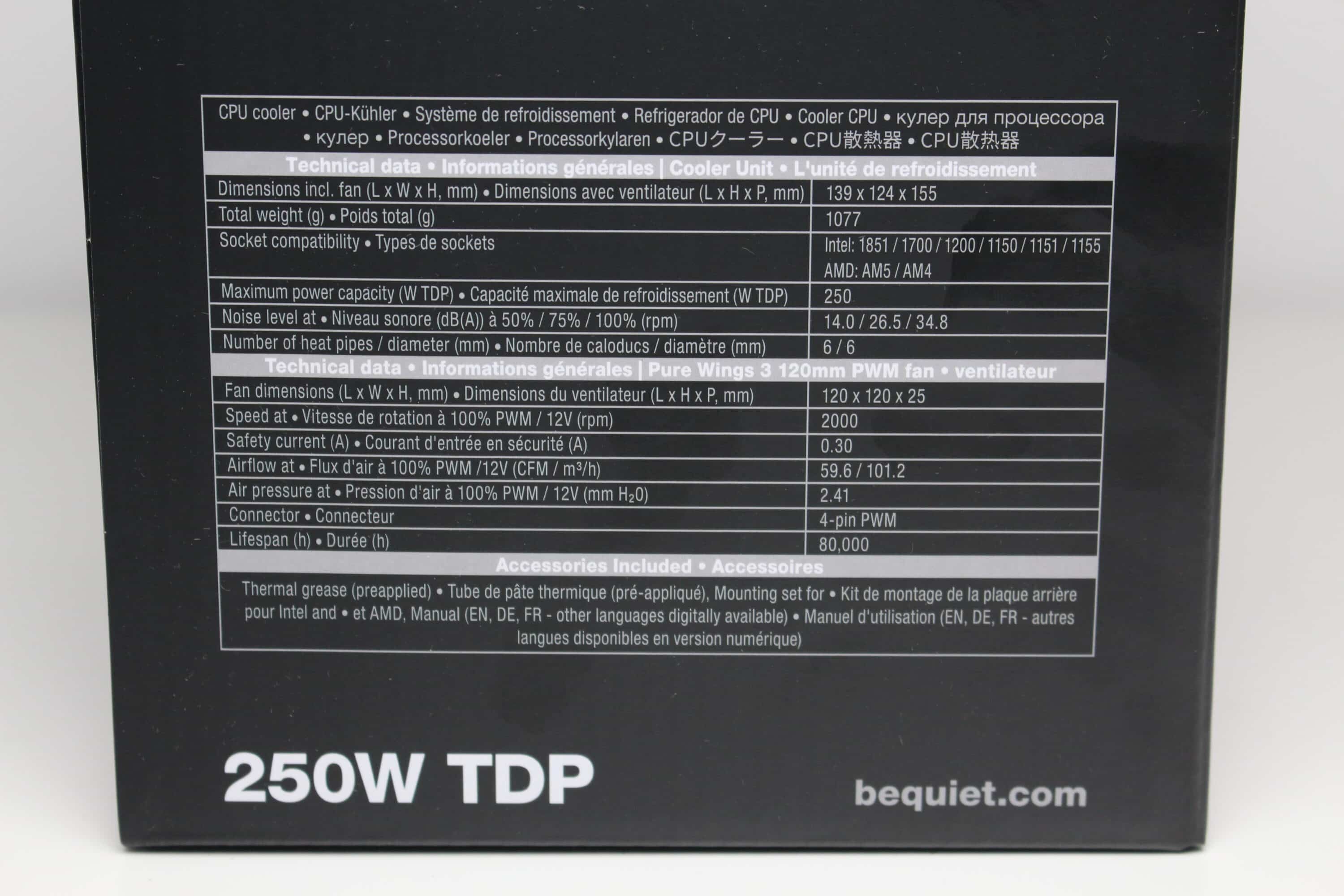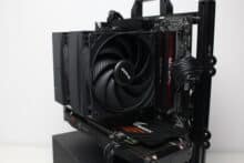 Kühlkörper und Lüfter bringen zusammen ein Gewicht von 1077 Gramm auf die Waage. Das ist schon recht ordentlich und auch die Abmessungen von 155 x 124 x 139 sind nicht mehr unbedingt als kompakt zu bezeichnen. Durch seine Gesamthöhe von 155 Millimetern sollte der Pure Rock 3 Pro aber dennoch in viele Gehäuse passen. In Bezug auf die Verarbeitung gibt es keinen Raum für Kritik. Alle Bauteile wurden hochwertig verarbeitet und lackiert.