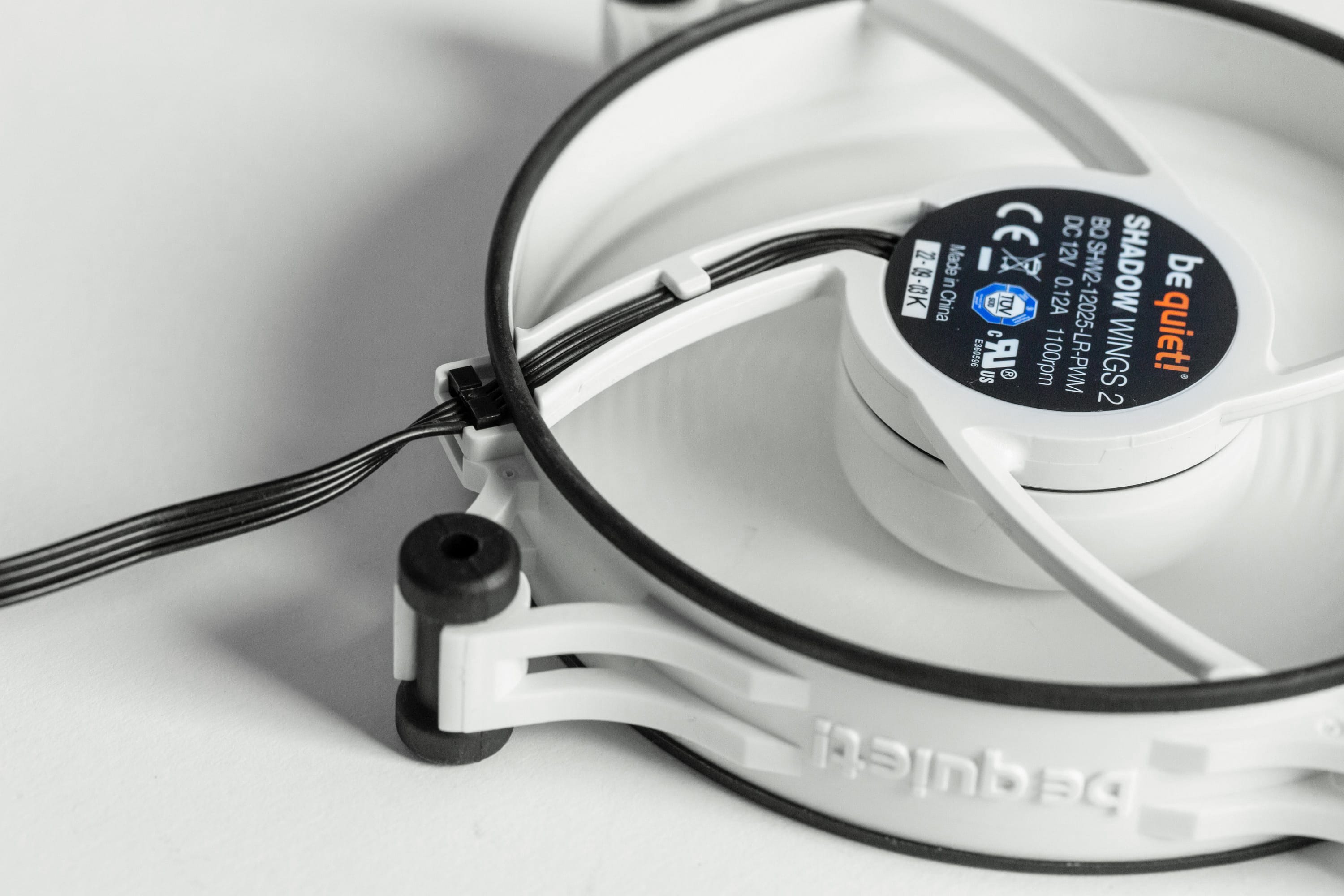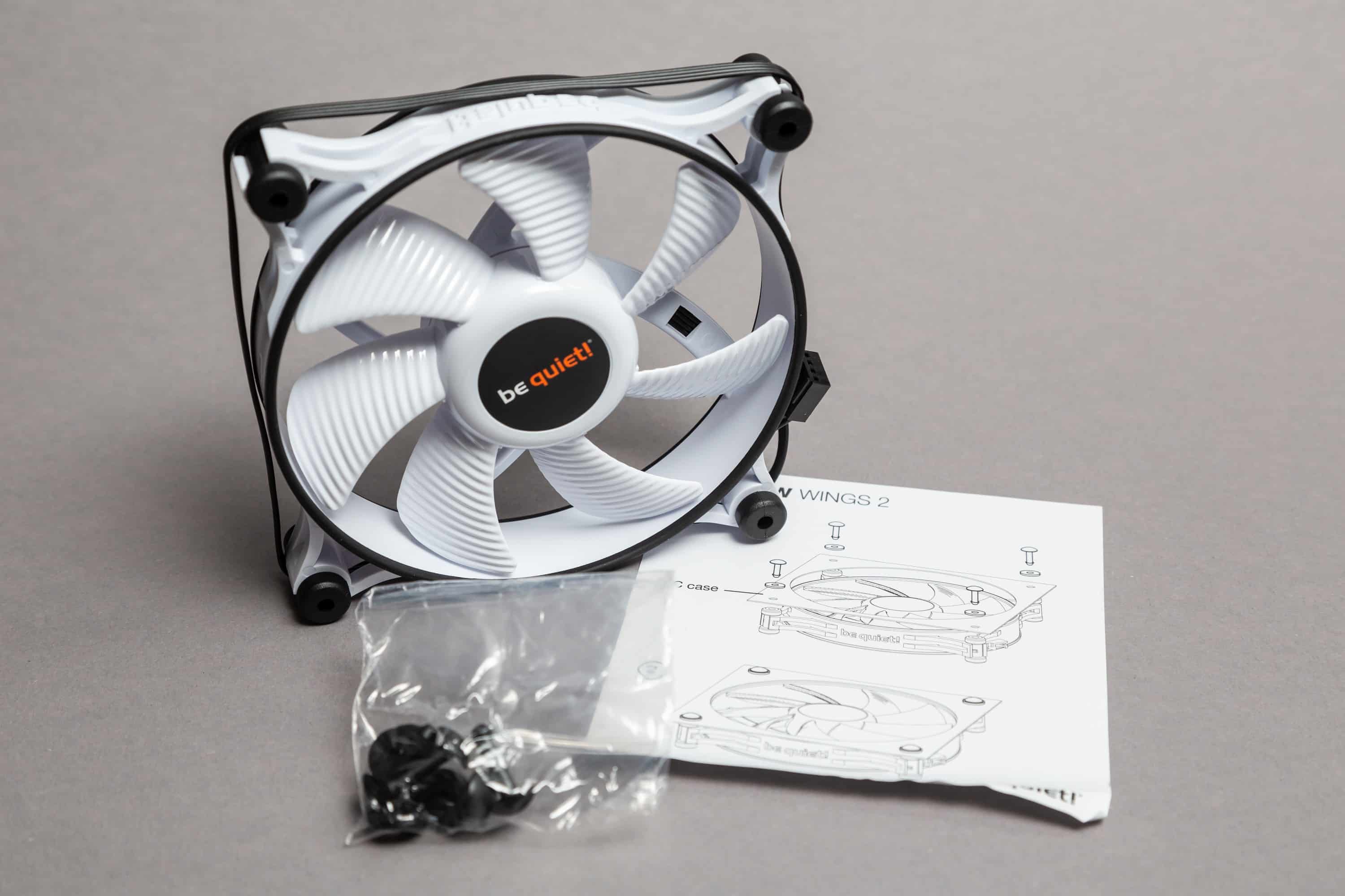 Was auffällt, das ist das Fehlen der eigentlich obligatorischen Lüfterschrauben. Stattdessen setzt be quiet! bei den Shadow Wings 2 auf ein werkzeugloses System mit Pins, die einfach eingedrückt werden. Dazu später mehr.