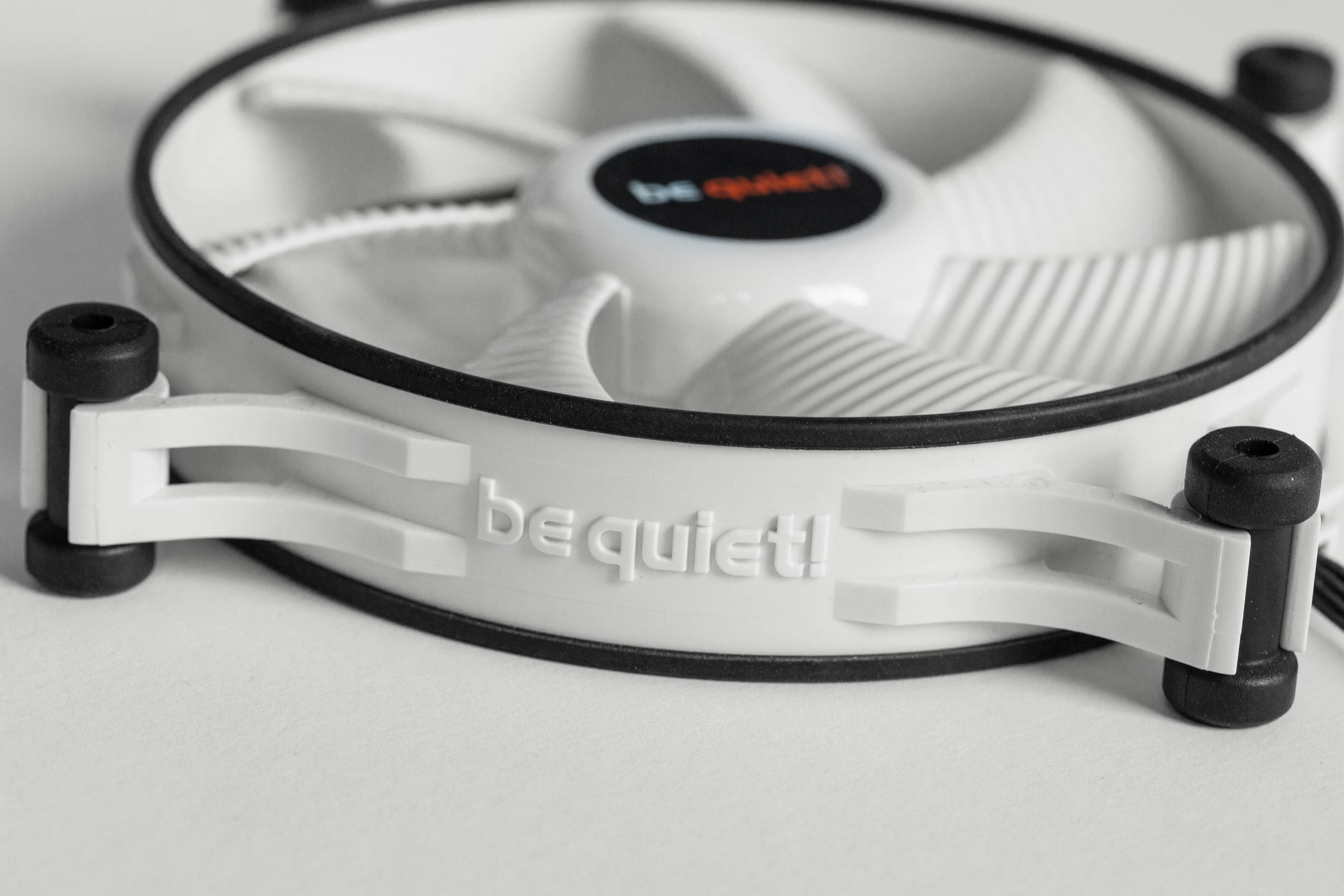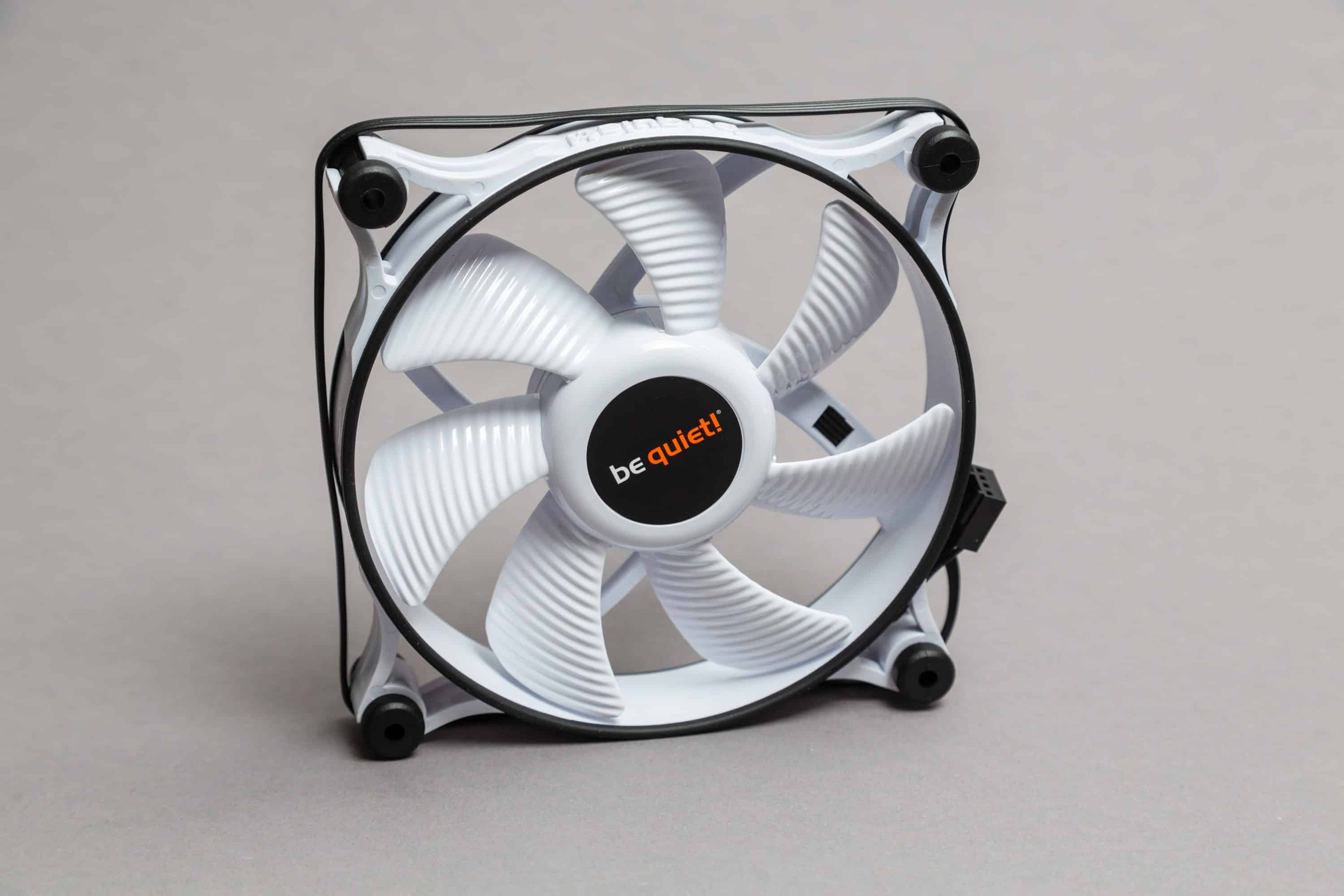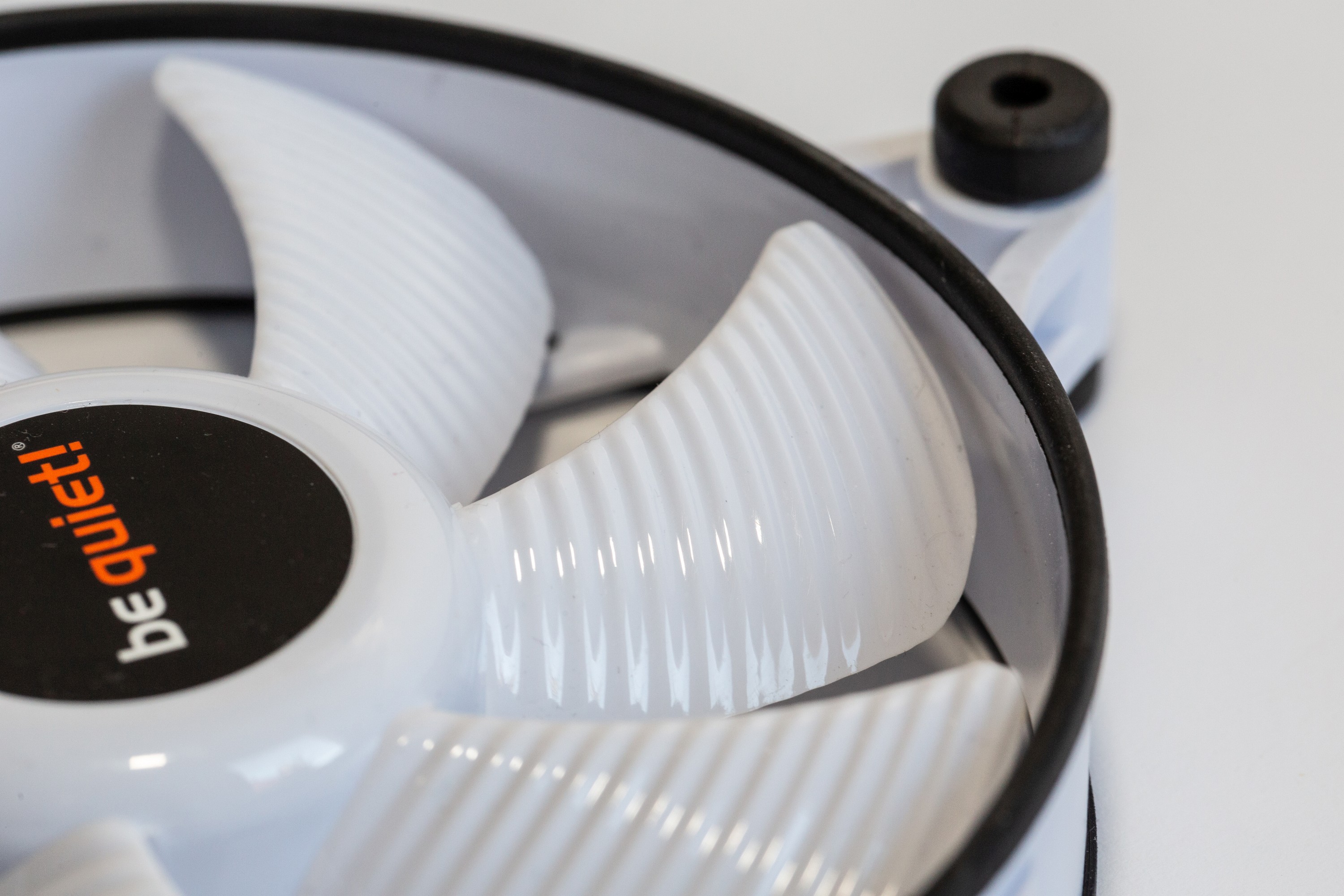 Ein Unterschied zwischen der schwarzen und der weißen Variante ist die Oberfläche. Wo die schwarze Version leicht strukturiert ist, sind die weißen Lüfter hochglänzend glatt. Natürlich haben beide Lüfter die für be quiet! so typische Wellenstruktur, die ein wenig an die Flügel von Junkers-Flugzeugen erinnert.