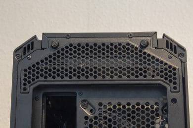 Da ich aber noch kontrollieren wollte, ob die sechs Öffnungen im Deckel zu restriktiv sind um die Abwärme eines großen Radiators abführen zu können, habe ich den Radiator einmal in der Front installiert und einen Pure Wings 2 Lüfter in den Deckel gesetzt. Mit Temperaturen von 60 °C für die CPU und 72 °C für die GPU ist das Ergebnis zumindest auf Seiten der CPU ein ganzes Stück besser. Hinzu kommt hier noch, dass das System subjektiv leiser ist. Um die Messungen zu vervollständigen habe ich die AiO noch gegen den LC-Power Cosmo Cool LC-CC-120* getauscht. Hierbei handelt es sich um einen normalen Tower-Kühler mit 120 mm Lüfter. In dieser Konfiguration erreichte die CPU 70 °C und die GPU 72 °C. Die Temperaturen sind zwar hier wieder etwas höher, dafür ist das System gefühlt aber nochmal leiser als mit der AiO in der Front.