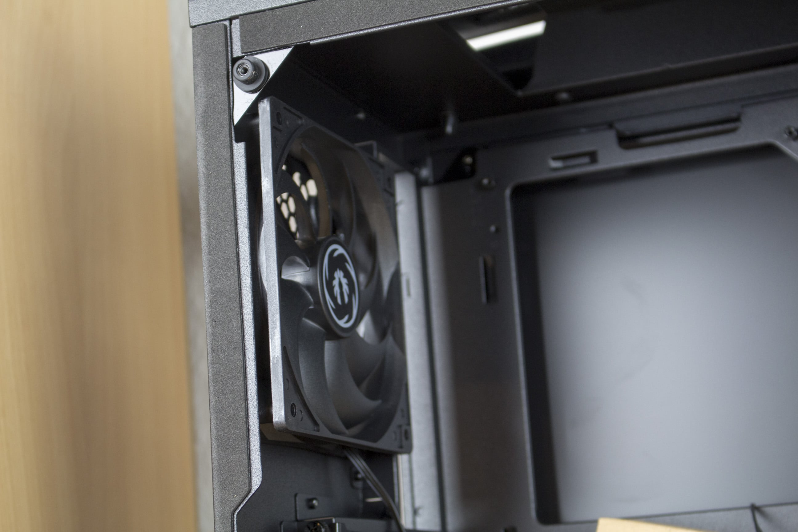 Im Vergleich mit ähnlichen Geräten fällt auf, dass nur ein einziger 120-mm-Lüfter über dem Netzteil vorinstalliert ist. Darüber hinaus kann dieser nicht durch ein größeres Modell ersetzt werden. Der Einbau von 140-mm-Lüftern ist wie bereits erwähnt jedoch in der Front und im Deckel möglich.