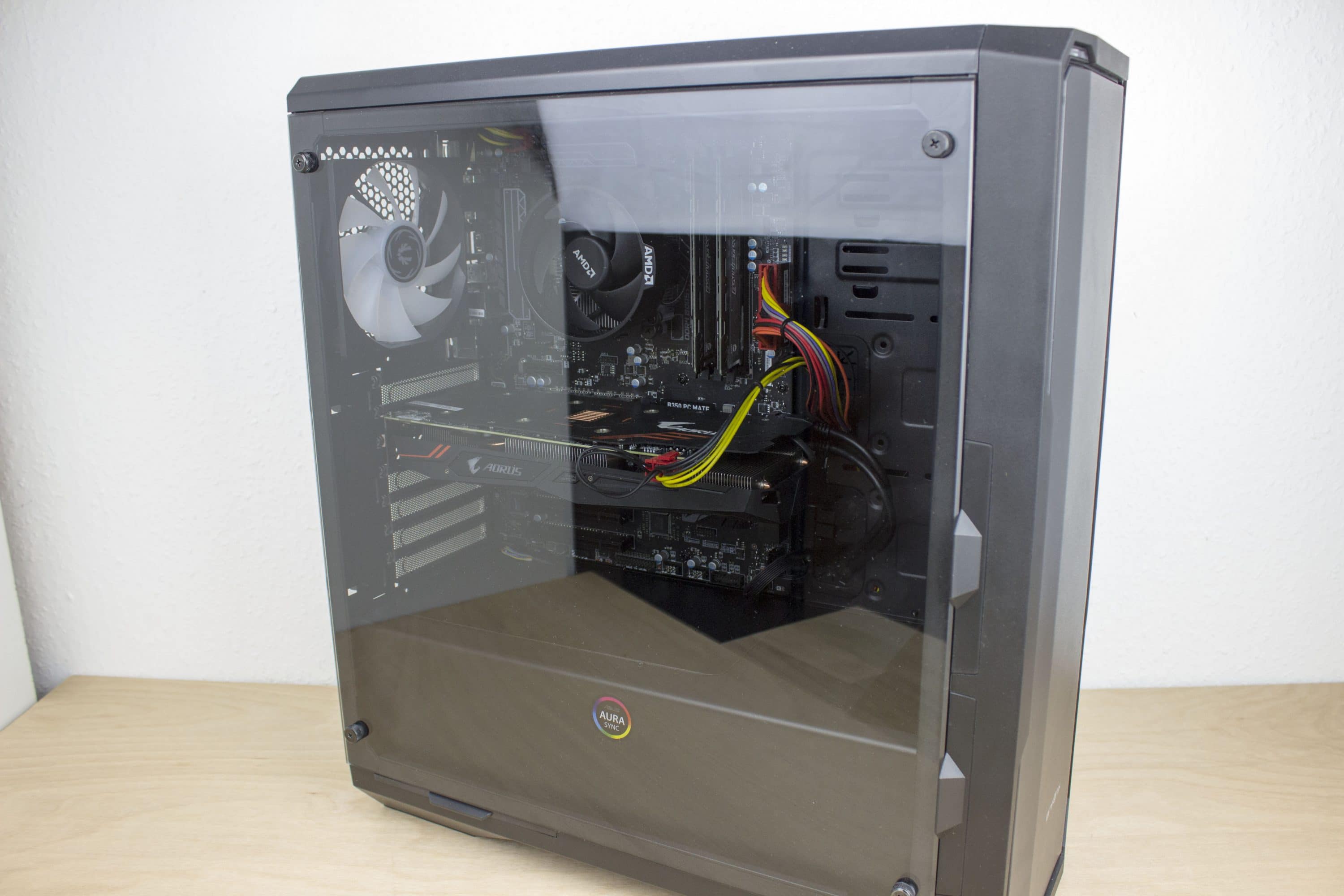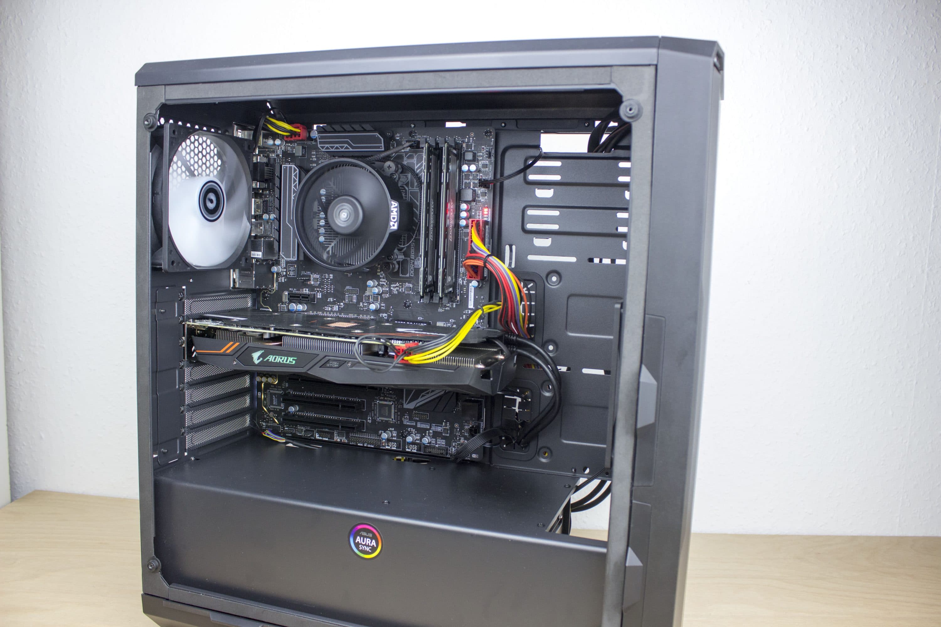 Schaut man sich die Bewertungen zum BitFenix Enso in einigen Shops an, kommt häufiger das Thema Airflow auf. Mit unserem Testsystem konnten wir selbst nach mehreren Stunden nicht feststellen, dass das Gehäuse sich wie ein Toaster verhält. Im Testsystem ist ein Ryzen 5 1400* und eine Gigabyte GTX 1600 mit 6GB von Aorus* verbaut. Ebenso 16 GB Arbeitsspeicher von Ballistix* auf einem MSI B350 PC Mate*.