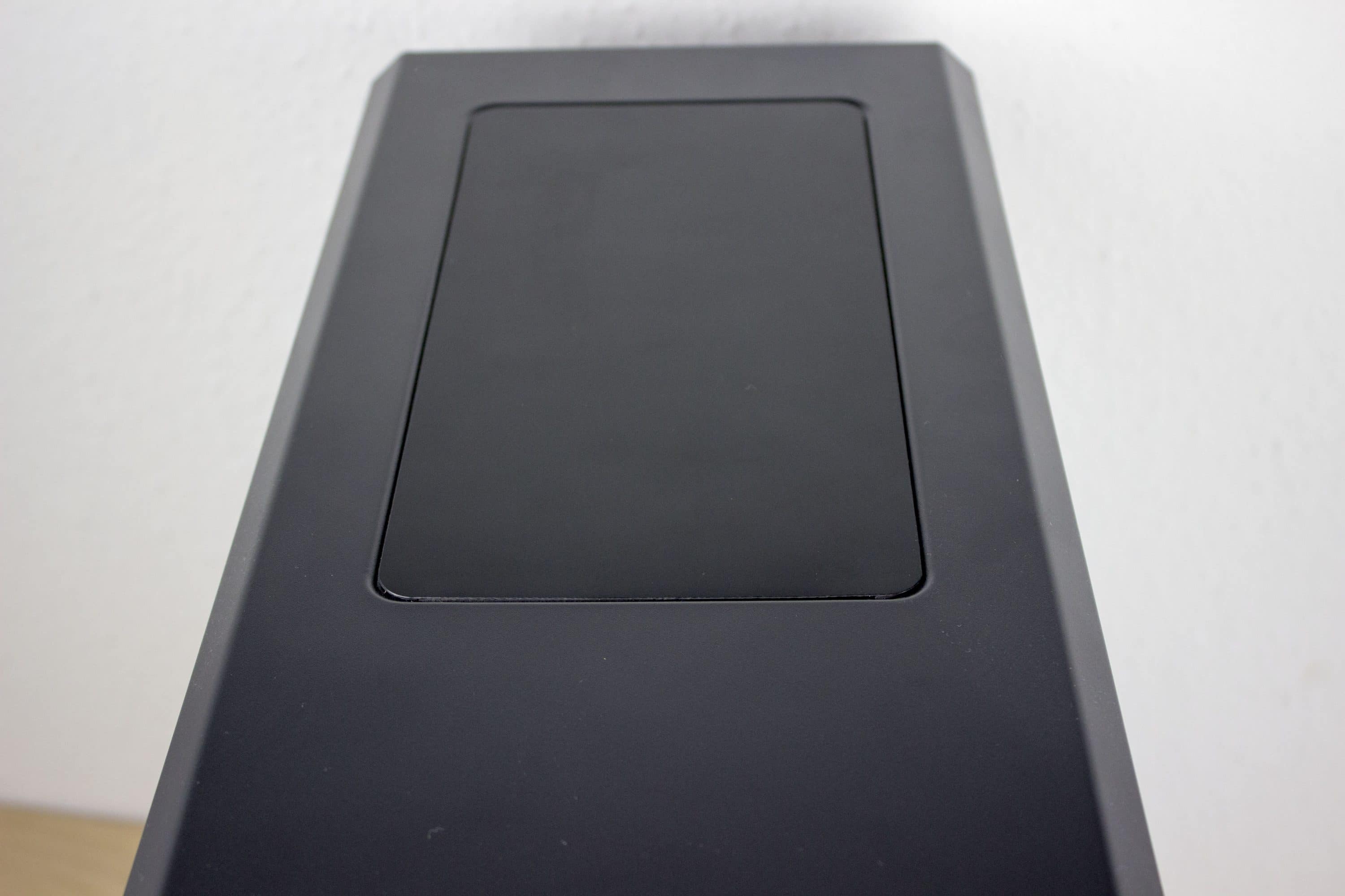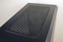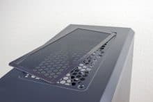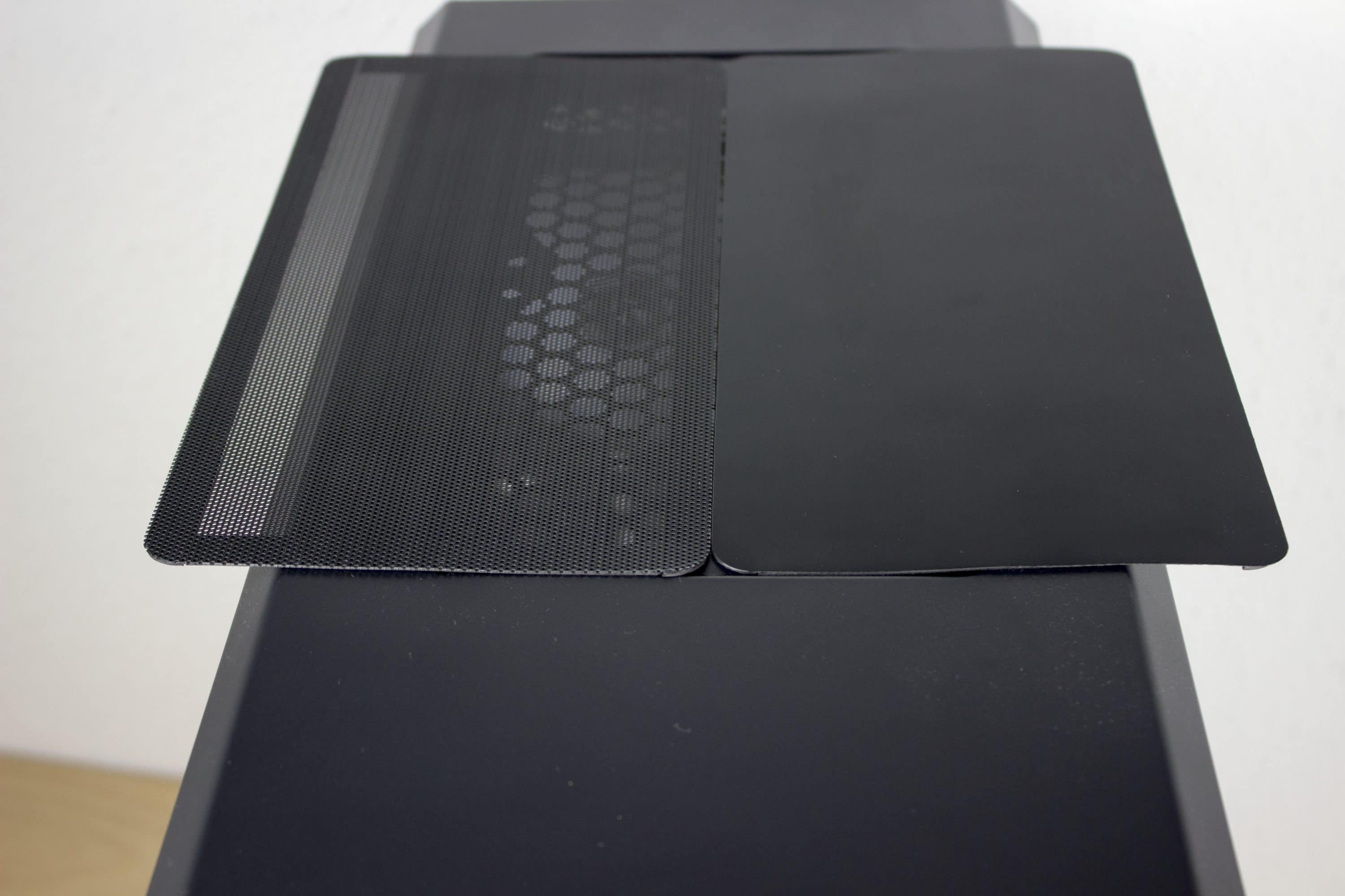 Auch die Ober- sowie Unterseite des BitFenix Enso bergen Besonderheiten. An der Unterseite finden wir vier wuchtige Standfüße, die mit Gummistreifen versehen sind. Standfest ist das Gehäuse also. Auf der Oberseite haben wir die Wahl, ob wir das Gehäuse mit einer magnetischen Abdeckung schließen oder ein magnetisches Meshnetz anbringen – ratsam wenn Lüfter im Deckel verbaut werden.