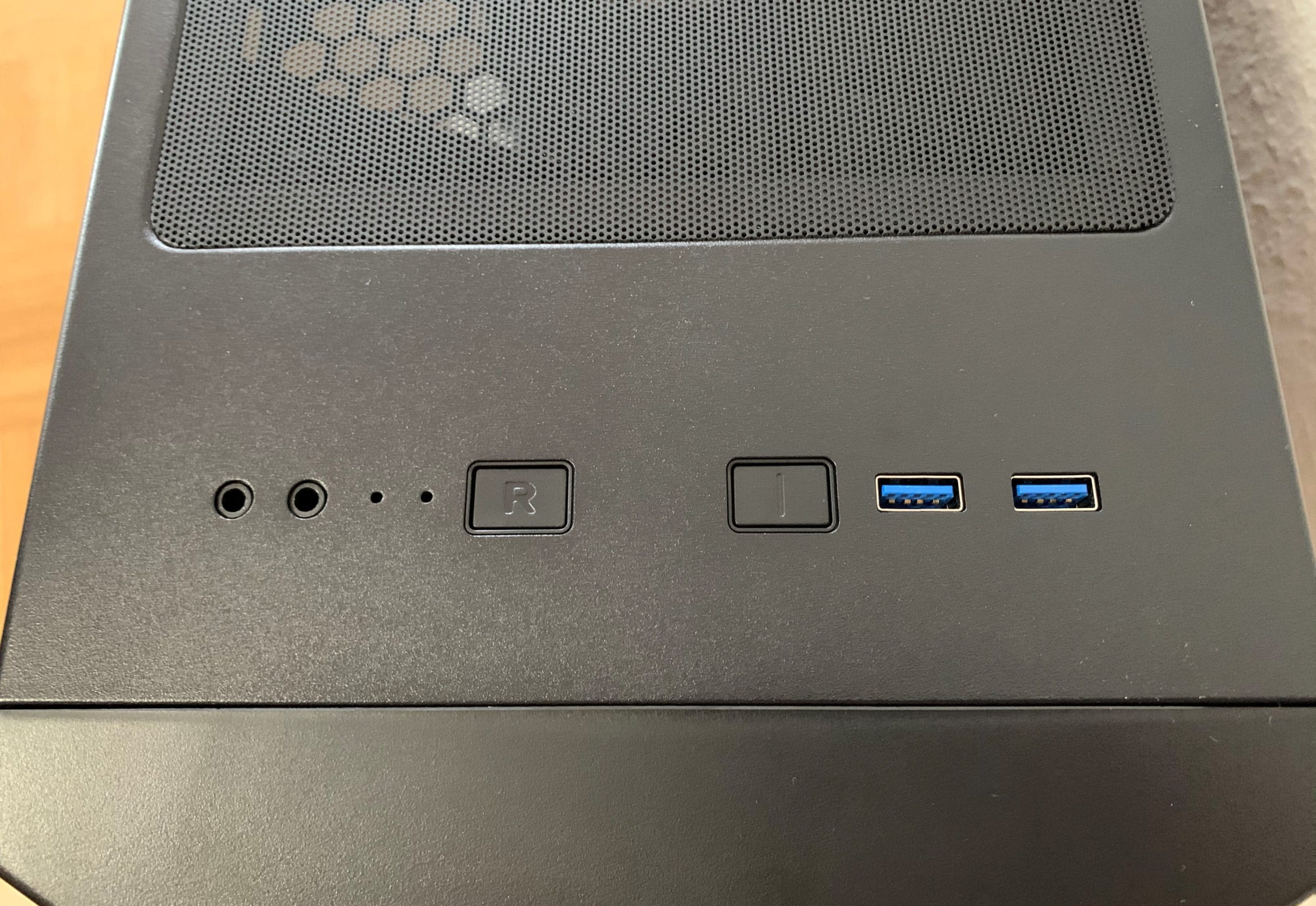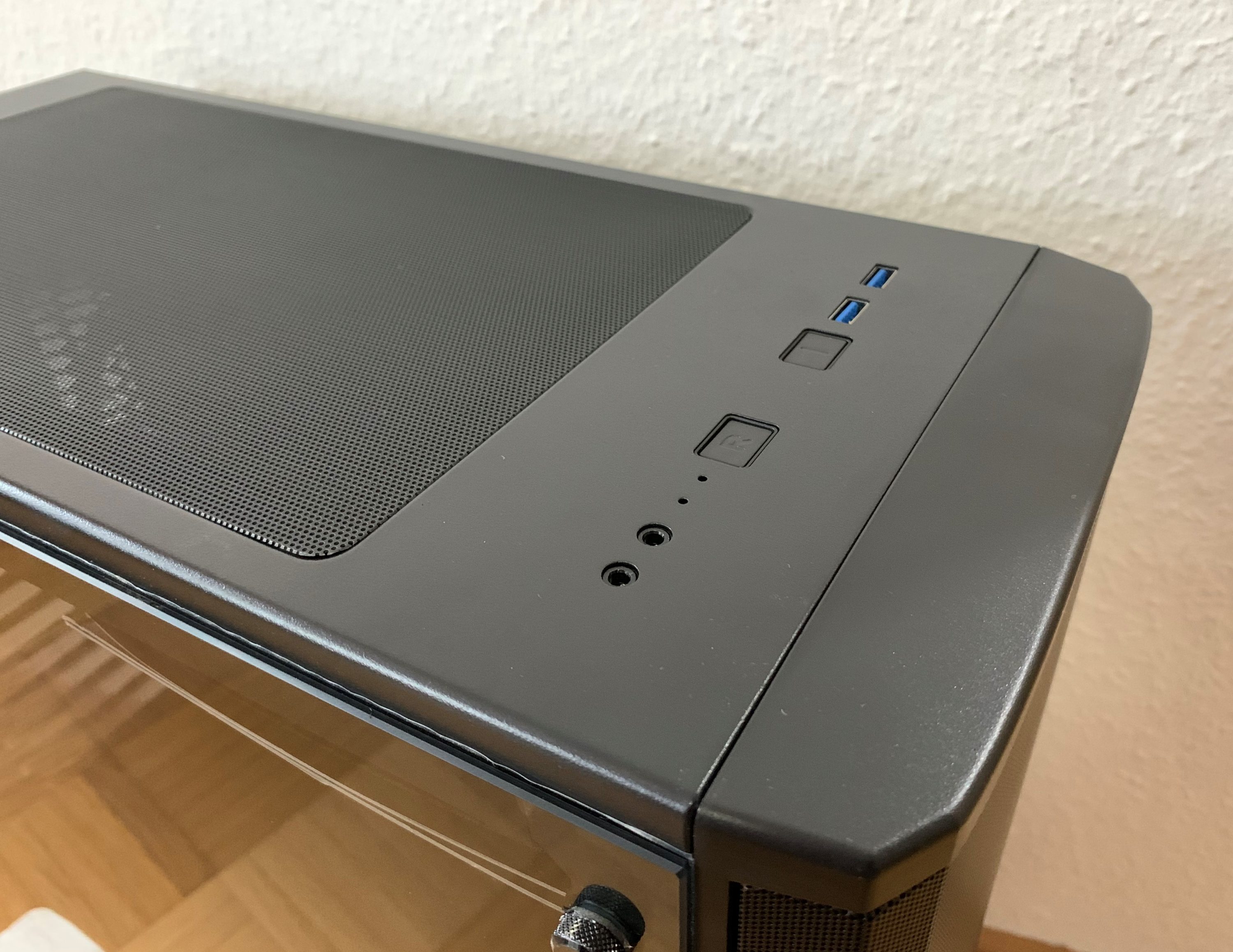 Das Frontpanel besitzt neben den typischen An-/Aus- und Resetschaltern sowohl zwei USB-3.0-Anschlüsse, als auch zwei 3,5-mm-Klinkenanschlüsse. Ein Anschluss für USB-Typ-C fehlt, in dieser Preisklasse ist das aber noch nicht häufig anzutreffen.