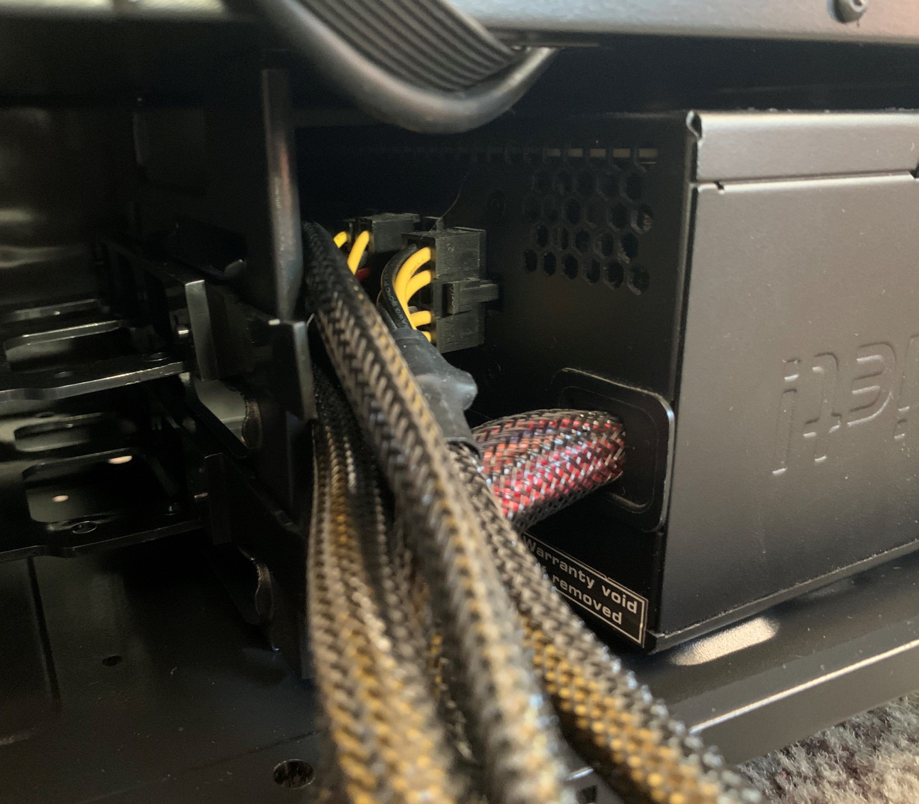 Bei Nutzung eines Netzteiles mit Kabelmanagement oder einem etwas größeren Energiespenders, ist die maximale Länge von 160 mm zu beachten. Der nicht entfernbare Festplattenkäfig limitiert hier leider. Das montierte Straight Power 10 von be quiet! konnte jedoch noch problemlos eingebaut werden.