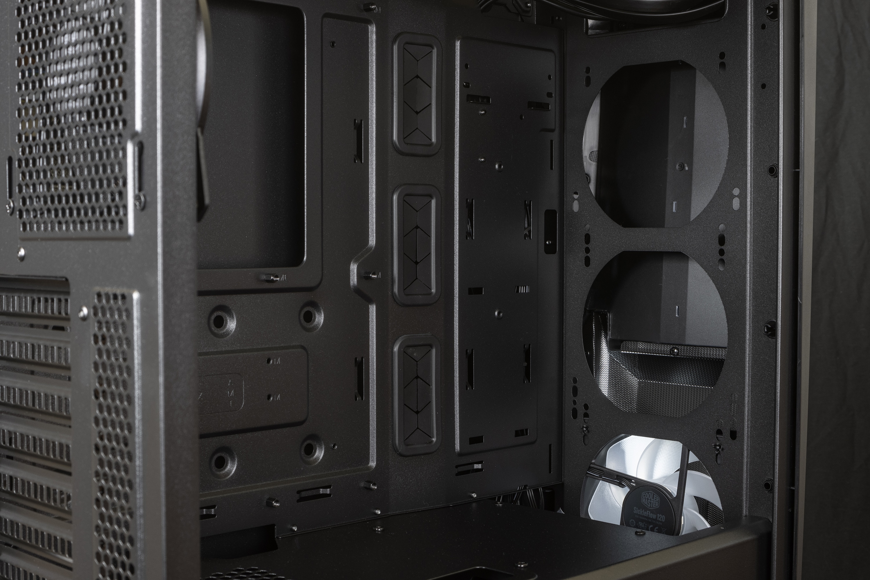 Alle Metallteile sind ordentlich verarbeitet und es gibt keine scharfen Kanten. Insgesamt fällt der Innenraum des Cooler Master MasterBox 500 somit durchaus positiv auf.