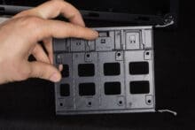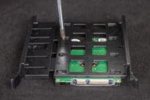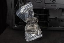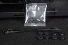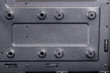 Weiterhin werden acht Gummiabdeckungen mitgeliefert, die man am Mainboard-Tray einsetzen kann. Mit ein paar ungewöhnlichen schraubbaren Steckern kann man hier mühelos zwei weitere 2,5“-Laufwerke anbringen. Somit bietet das Gehäuse Platz für sechs SATA-Laufwerke, um so die übliche Anzahl der Header auf einem Mainboard vollkommen nutzen zu können.