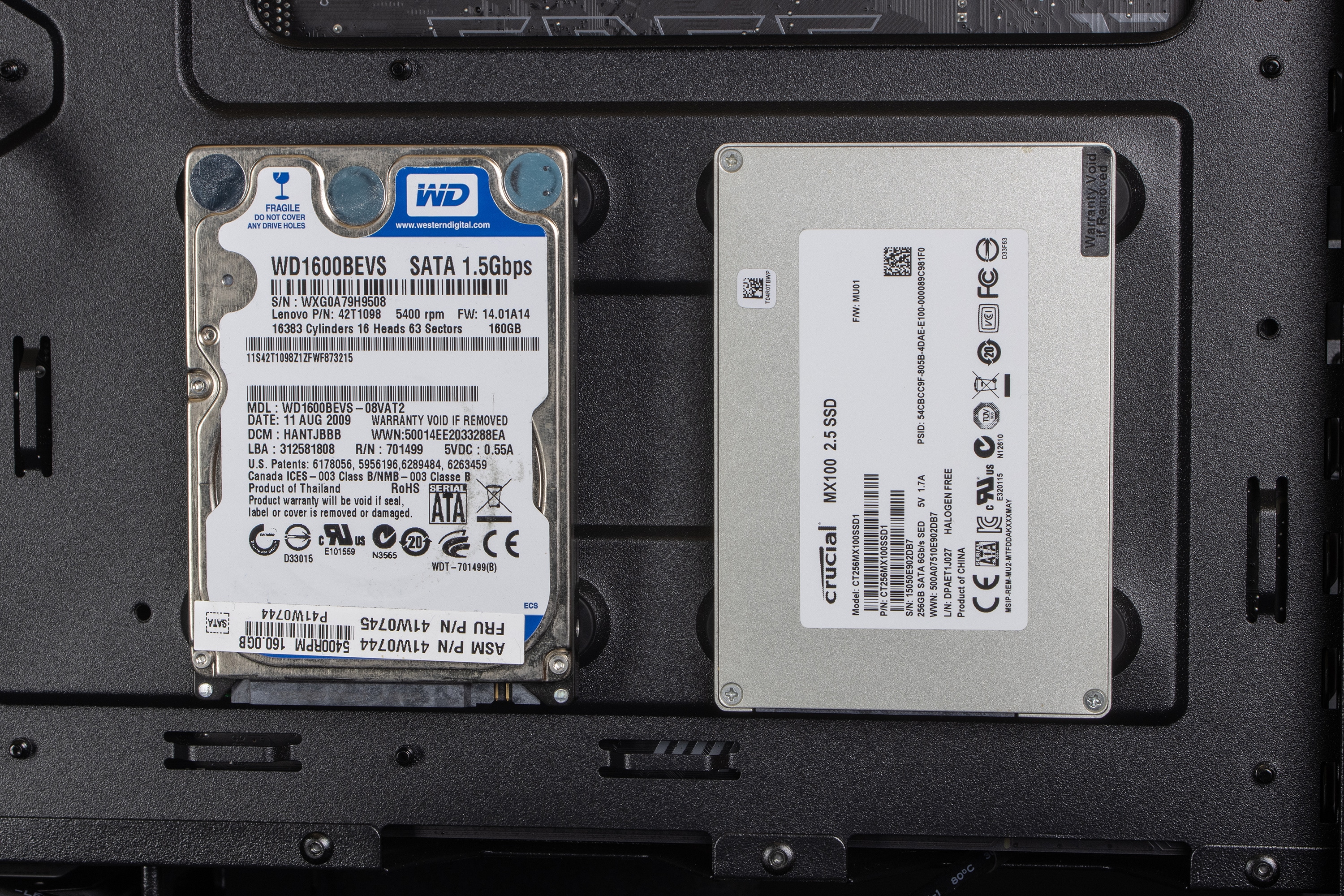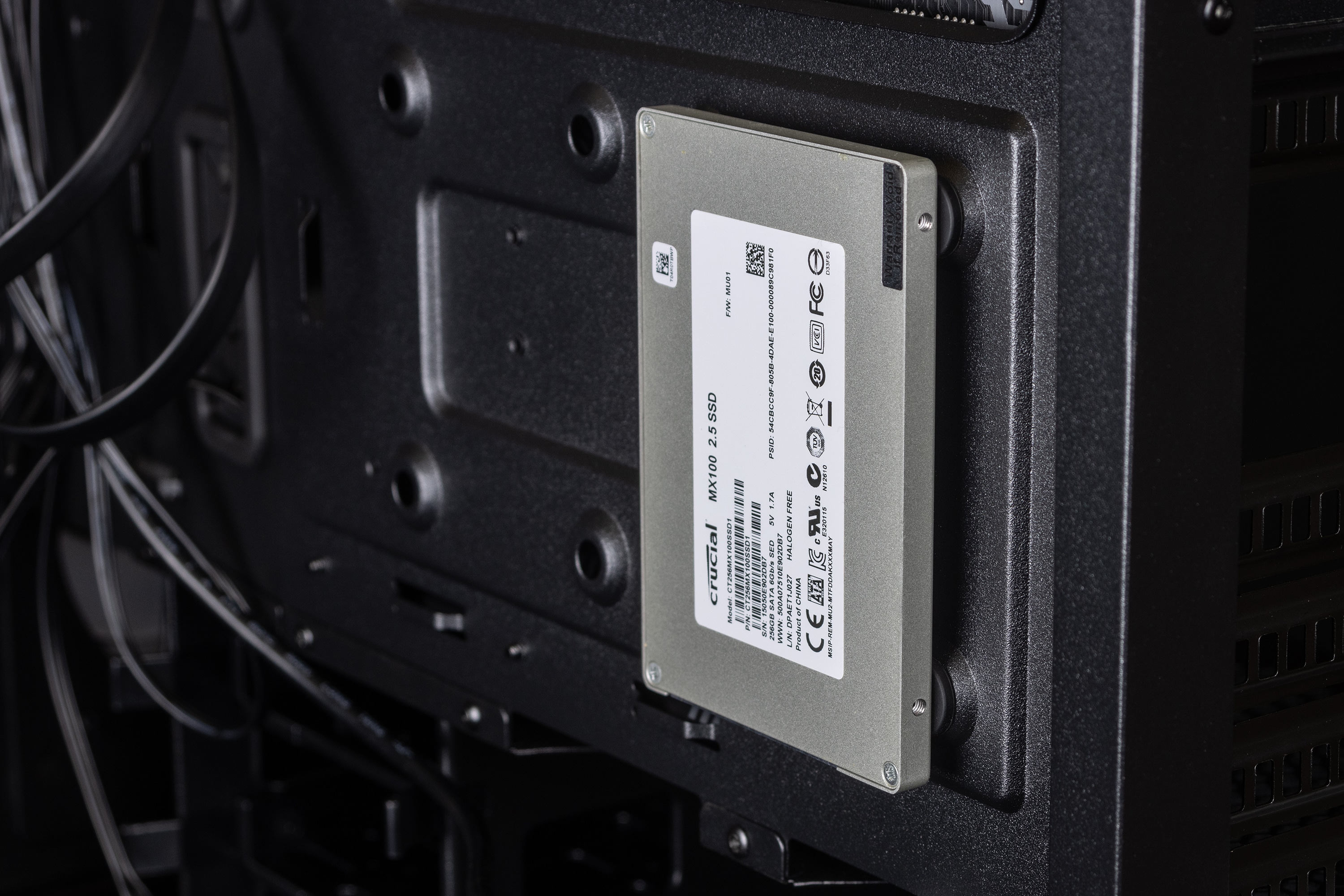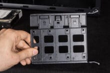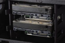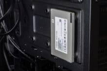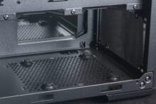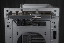 Wer komplett auf SSDs setzt, kann den Festplattenkäfig durch zwei Schrauben auf der Unterseite des Gehäuses und zwei Schrauben im Innenraum auf der Netzteilabdeckung gänzlich herausschrauben und den gewonnenen Platz beispielsweise zum Verstecken übriger Kabel nutzen.