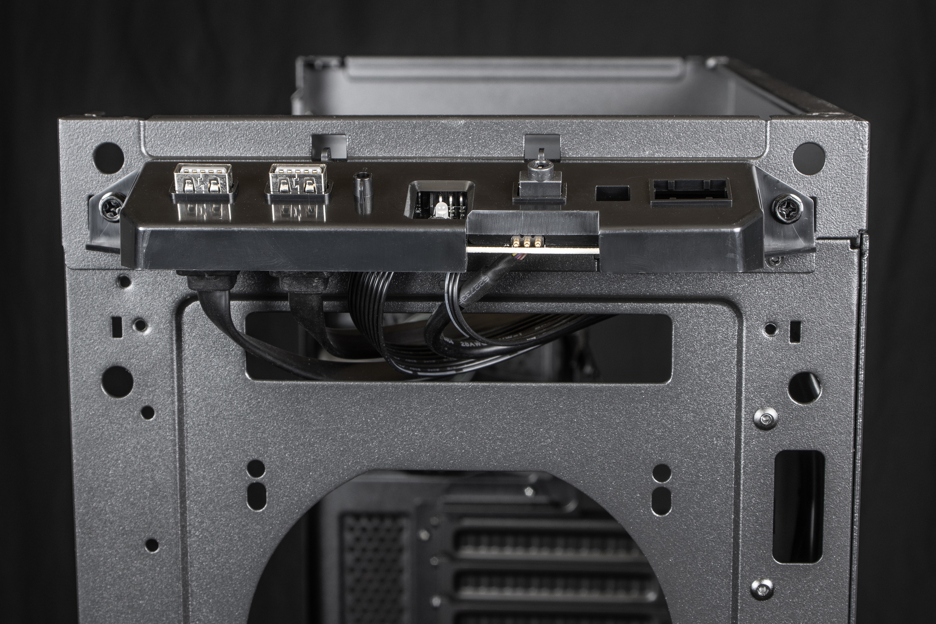 Stecker fürs Frontpanel lassen sich auch dann durch die Öffnungen stecken, wenn das Netzteil verbaut ist, es gibt Löcher für Stecker an fast allen nötigen Stellen. Allenfalls die Frontpanel-LEDs und der Power-Schalter, welche bei den meisten Mainboards unten rechts sitzen, sind nicht optimal durch die Öffnungen erreichbar.