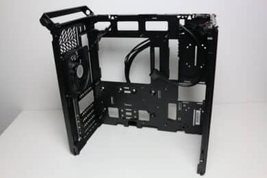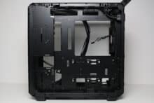Der Einbau aller Komponenten war auch im vormontierten Qube 500 grundsätzlich kein Problem, wenn auch etwas schwieriger als wenn man den Anweisungen des Herstellers folgt und die Komponenten zusammen mit dem Gehäuseelementen montiert. Ist das Qube 500 einmal montiert, geht es aufgrund der kompakten Abmessungen im Innenraum doch etwas es enger zu. Die Verkabelung war aufgrund der ausreichend dimensionierten Öffnungen im sowie dem Platzangebot hinter dem Mainboard-Tray bei Standardkomponenten ebenfalls kein Problem. Verbaut man jedoch ein sehr langes Netzteil oder ein extrabreites Mainboard, dann könnte es passieren, dass wichtige Kabelmanagementöffnungen verdeckt werden.