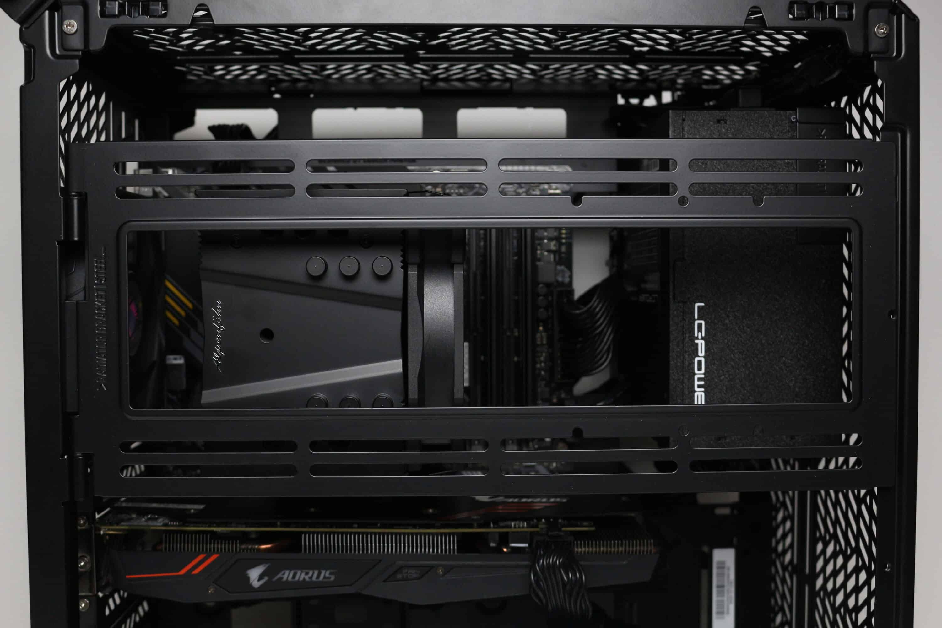 Da das Layout durch die modularen Anbauteile jederzeit verändert werden kann, ist das Qube 500 auch in dieser Hinsicht sehr flexibel. Hinzu kommt außerdem, dass das Netzteil, je nach Größe des Mainboards, nicht nur an der Front sondern auch am Boden platziert werden kann. Möchte man aber ein ATX-Netzteil im Boden verbauen, dann darf maximal ein ITX-Mainboard verbaut werden und die Grafikkarte darf nicht höher als 2 bis 2,5-Slots sein. Dafür hat man an der Front nach dem Umbau Platz für einen weiteren 280-mm-Radiator.