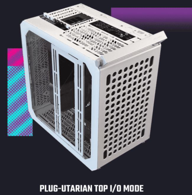 – Plug-Utarian Top I/O Mode (Tempered Glass, Mainboard-Anschlüsse oben)