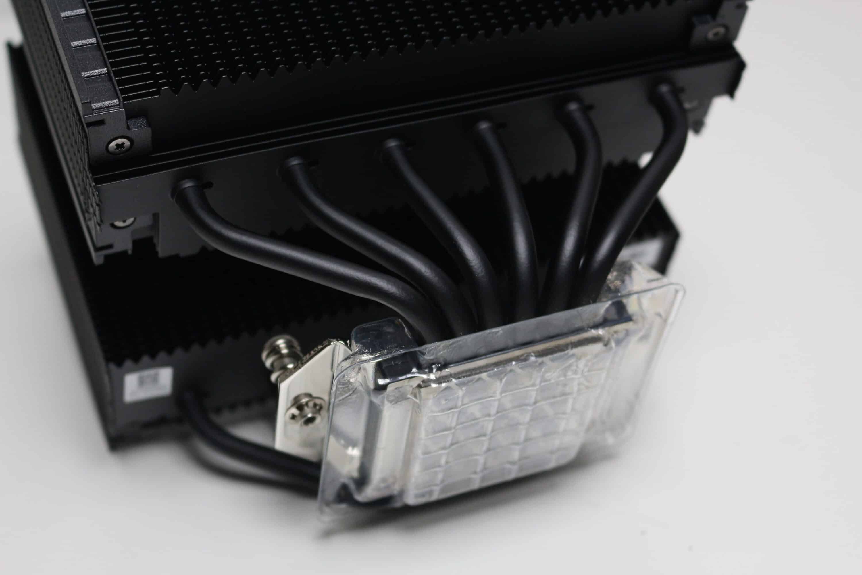 | Material: | Kupfer (Heatpipes und Bodenplatte, vernickelt), Aluminium (Kühlrippen, schwarz vernickelt) |
