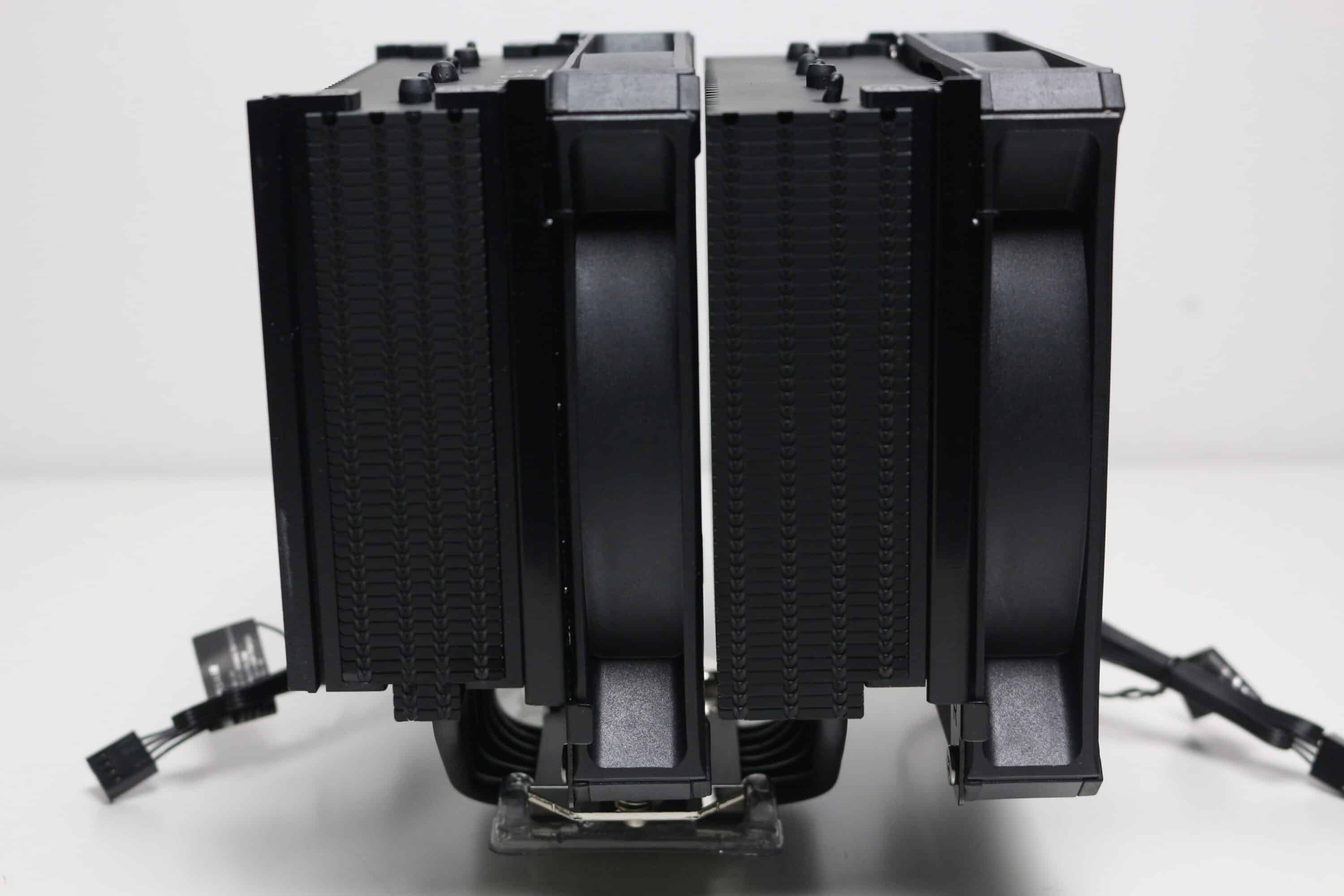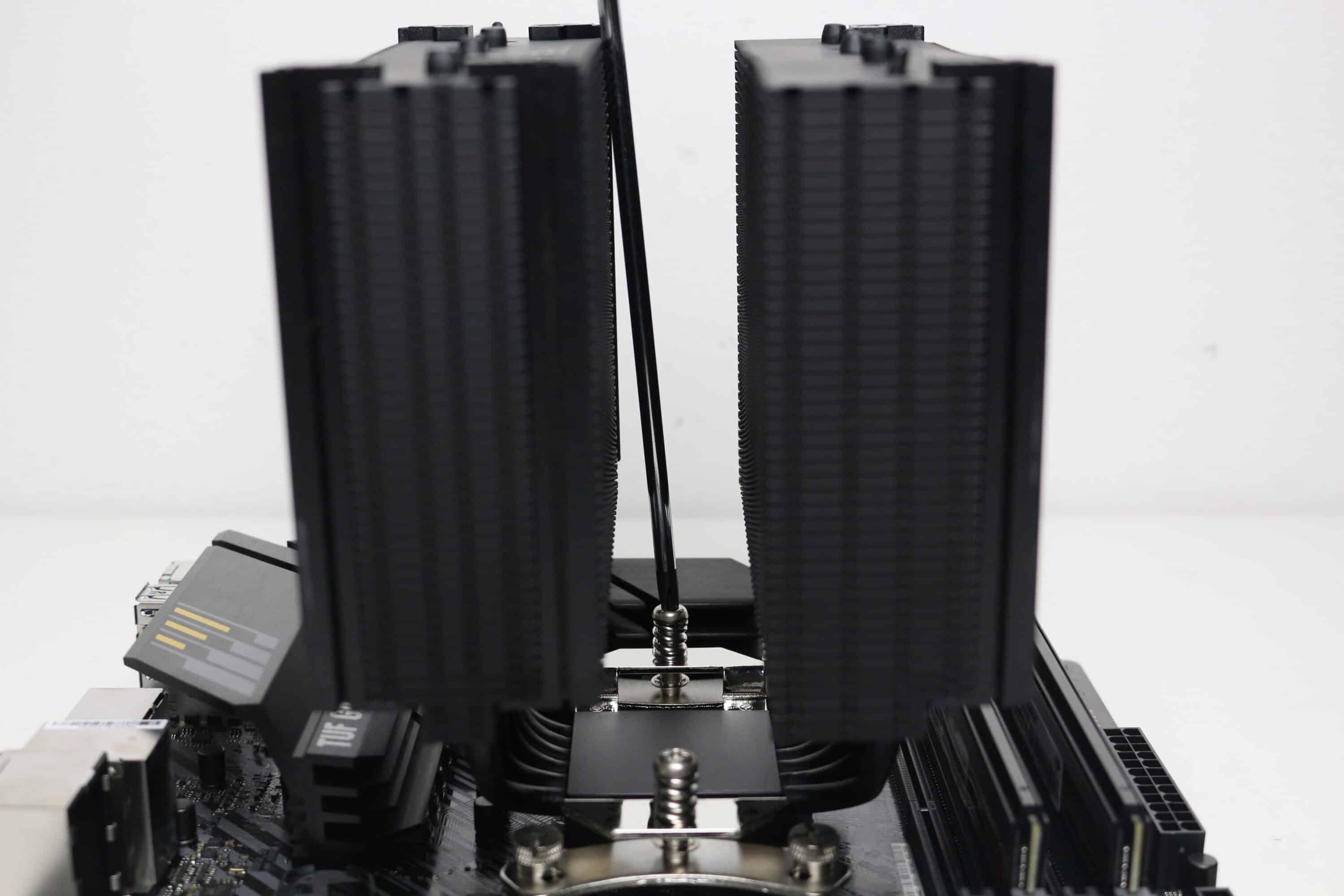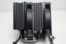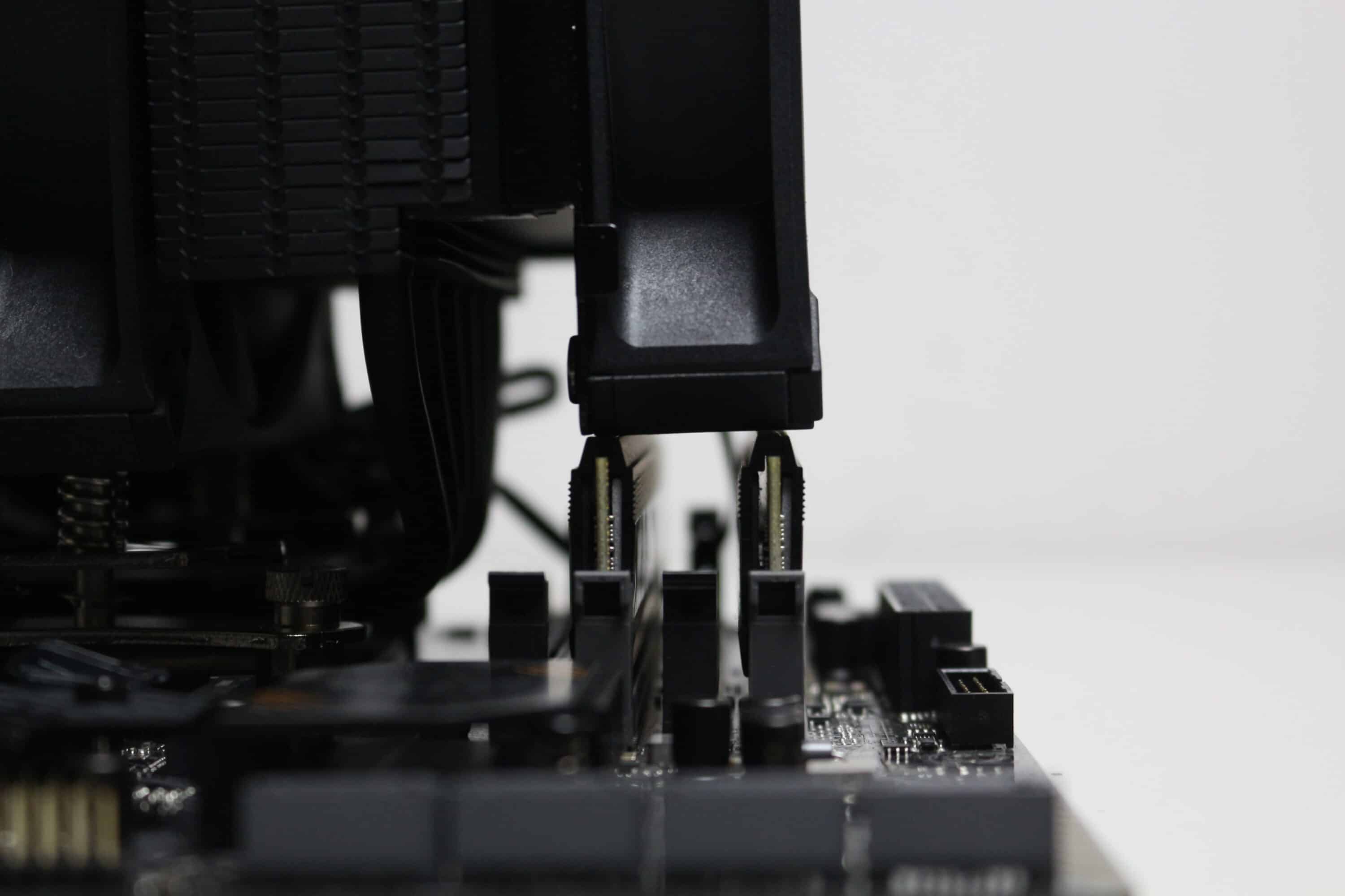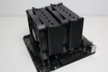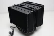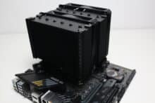 Die hervorragende Kühlleistung wird vermutlich aber vor allem durch die wuchtigen Abmessungen des A115 erreicht. Diese führen schnell dazu, dass alle RAM-Slots verdeckt werden und auch der erste PCIe-Slot gegebenenfalls überragt wird. Da der vordere Lüfter zudem eine 140-mm-Variante ist, kann dieser selbst bei normal hohen RAM-Modulen nicht ganz unten platziert werden. Dadurch ragt er über den Kühler hinaus, was optisch nicht so schön aussieht und die Bauhöhe des Kühlturms weiter erhöht. Mit diesen Problemen haben aber fast alle High-End Luftkühler mit zwei Lüftern zu kämpfen.