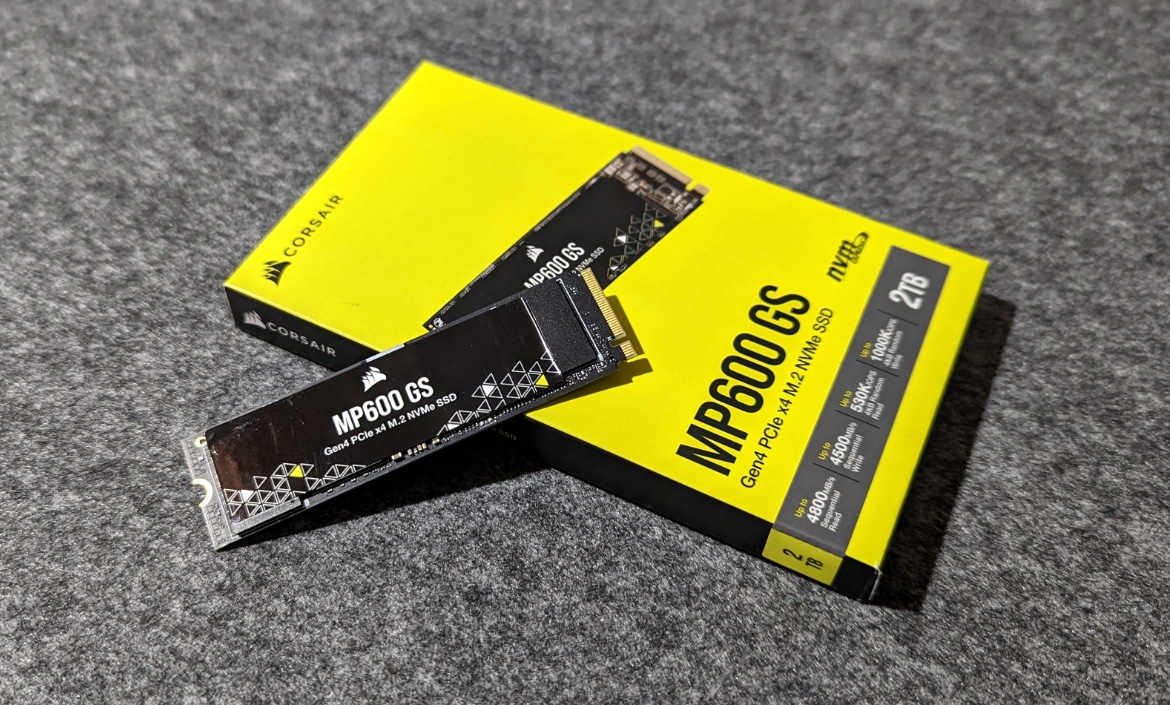 Corsair setzt bei der MP600 GS wie auch bei den Pro-Modellen auf einen schnellen 176-lagigen TLC-NAND von Micron (B47R). Als Controller kommt Phisons PS5021-E21T, ohne einen DRAM-Cache, statt dem PS5018-E18 zum Einsatz. Die MP600 GS benötigt zudem weniger Strom als die Pro-Modelle. So sinkt der Verbrauch gegenüber der Pro LPX beim Lesen von bis zu 8,6 W auf bis zu 5,3 W und beim Schreiben von bis zu 8,5 W auf bis zu 4,9 W. Durch den geringeren Stromverbrauch entsteht auch weniger Abwärme, wodurch man auf einen Kühlkörper verzichten kann. Dies ermöglicht bspw. den Einsatz in Notebooks. Die Garantiedauer der SSD beträgt 5 Jahre bzw. gilt bis zu einer Schreibleistung von 1.200 TB.