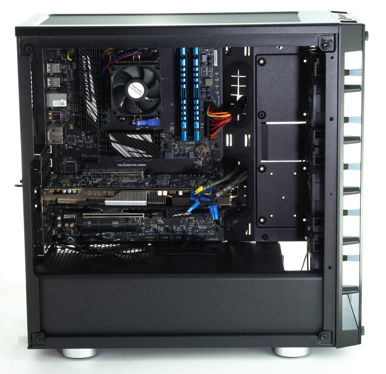 Nachdem sich Corsair beim Innenraum an den modernen Standard hält, ohne diesen groß abzuwandeln, gibt es beim Einbau keine größeren Überraschungen. Bei den Komponenten liefert das Unternehmen dabei ein übliches Paket ab: Die maximalen Längenbeschränkungen für CPU-Kühler, die Grafikkarte sowie das Netzteil reichen für alle üblichen Komponenten aus. Hier gibt es also kaum etwas zu beachten.