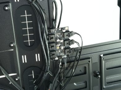 Außerdem befindet sich an der Rückseite des Gehäuses noch die Ansteuerung für die verbauten ARGB-Lüfter. Bei dieser handelt es sich um den Lighting Node Core, der aktuell nicht im Einzelhandel verkauft wird.