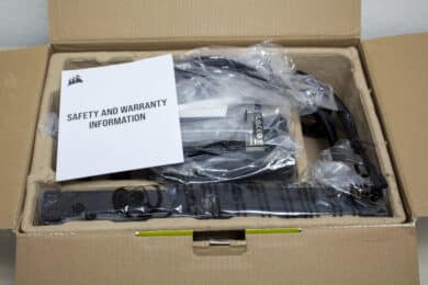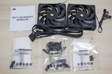 Corsair legt der Wasserkühlung keine gedruckte Montageanleitung bei. Dafür befindet sich auf der Verpackung aber ein QR-Code, welcher den Käufer auf die Produkt-Website führt. Über den Bereich „Downloads“ kann dann der Quick-Start-Guide heruntergeladen werden. Alternativ gibt es zur Montage auch ein YouTube-Video in dem jeder Montageschritt sehr genau erläutert wird. Ohne Internetzugriff wird es mit der Beschaffung der Anleitung aber generell schwierig.