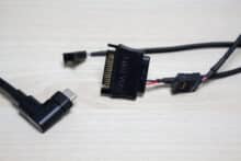 Die mitgelieferten 120-mm-Lüfter vom Typ AF120 ELITE sind aus schwarzem Kunststoff gefertigt und verfügen über einen Drehzahlbereich zwischen 400 und 1850 Umdrehungen pro Minute. Sowohl der Rotor mit seinen neun Lüfterblättern als auch der Rahmen sind für die Erzeugung eine möglichst hohen Luftdrucks bei gleichzeitig recht geringer Lautstärke ausgelegt. Der Anschluss der Lüfter erfolgt mittels 4-Pin-am Adapter-Kabel, welches per USB-C-Stecker direkt in den Pumpenblock führt.