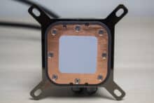Nun möchten wir aber noch ein paar Worte über die Pumpe selbst verlieren. Die im Block eingebaute Pumpe besitzt ein Keramik-Lager und dreht mit maximal 3500 Umdrehungen pro Minute. Der Anschluss erfolgt über das mitgelieferte USB-C-Kabel, welches sich am anderen Ende in SATA-Strom, 2x PWM, 1x Signal für Pumpe und einen internen USB-2.0-Anschluss aufteilt. Die komplette Steuerung der Kompaktwasserkühlung erfolgt also über die iCUE-Software. Eine Übertragung der Wärme vom Heatspreader der CPU an den Pumpenblock erfolgt über eine große Kupferplatte, auf der ab Werk bereits eine Schicht Wärmeleitpaste aufgetragen wurde.