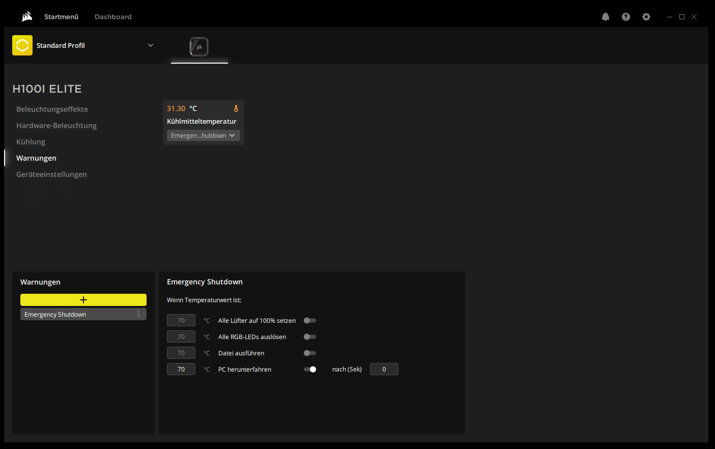 | Corsair iCUE H110 RGB ELITE | Lüfter 50% PWM Pumpe 50% PWM |