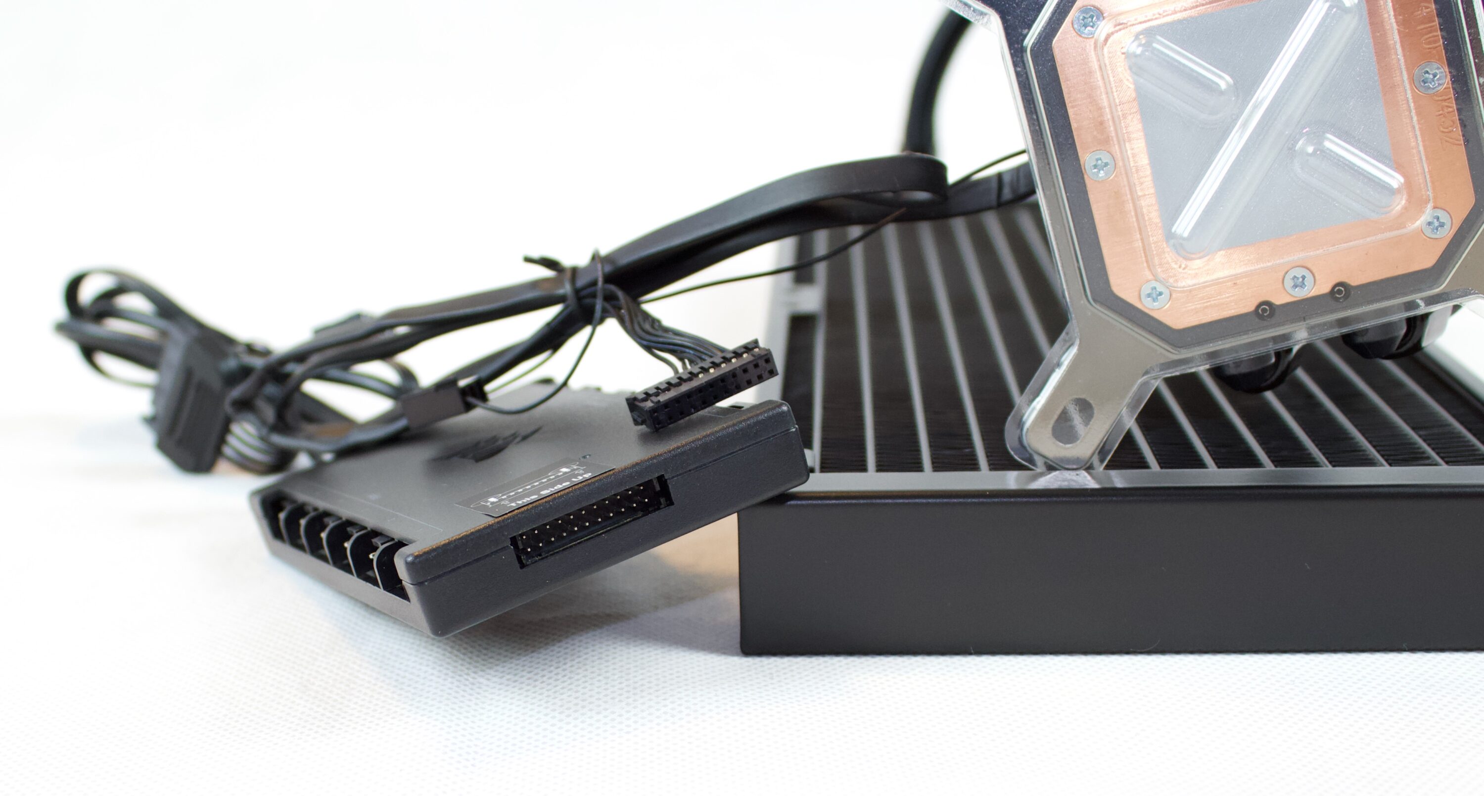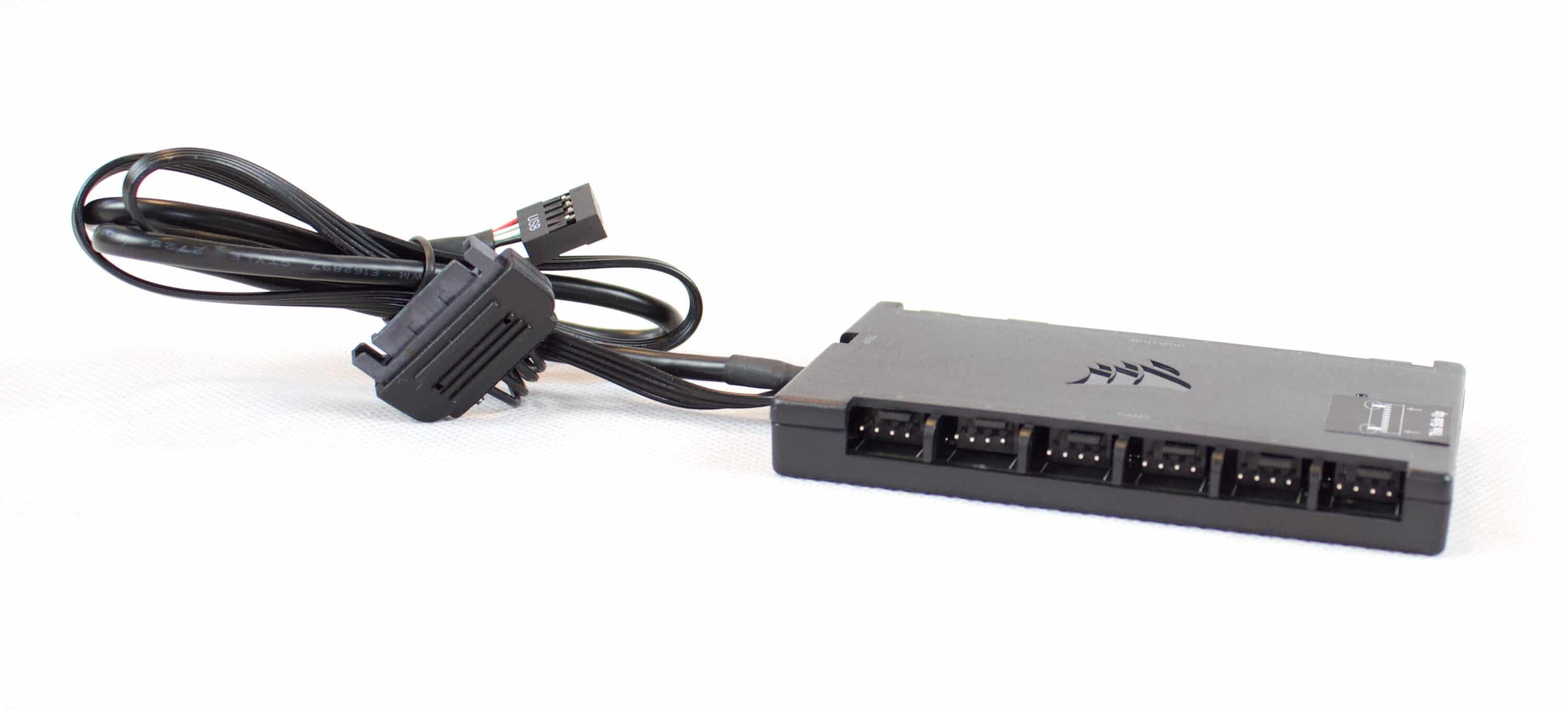 Der Anschluss aller Lüfter kann direkt über den im Lieferumfang enthalten Controller erfolgen. Der Controller wird dann per internen USB-Anschluss am Mainboard und per SATA am Strom angeschlossen. Am Controller können die Pumpe und je sechs 4-Pin-Lüfter und 4-Pin-RGB-Kabel angeschlossen werden.