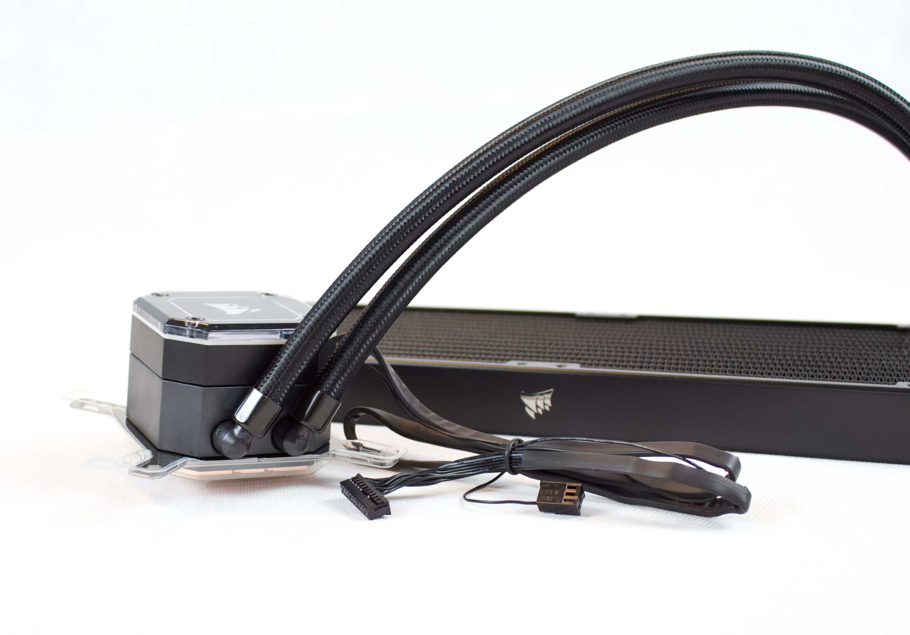 Bereits auf dem ersten Blick kann die Verarbeitung des iCUE H115i Elite Capellix* und dessen Zubehör überzeugen. Am Radiator konnten keine nennenswert verbogene Lamellen entdeckt werden. Die Schläuche sind ausreichend flexibel und einwandfrei am Radiator und an der Pumpe befestigt.