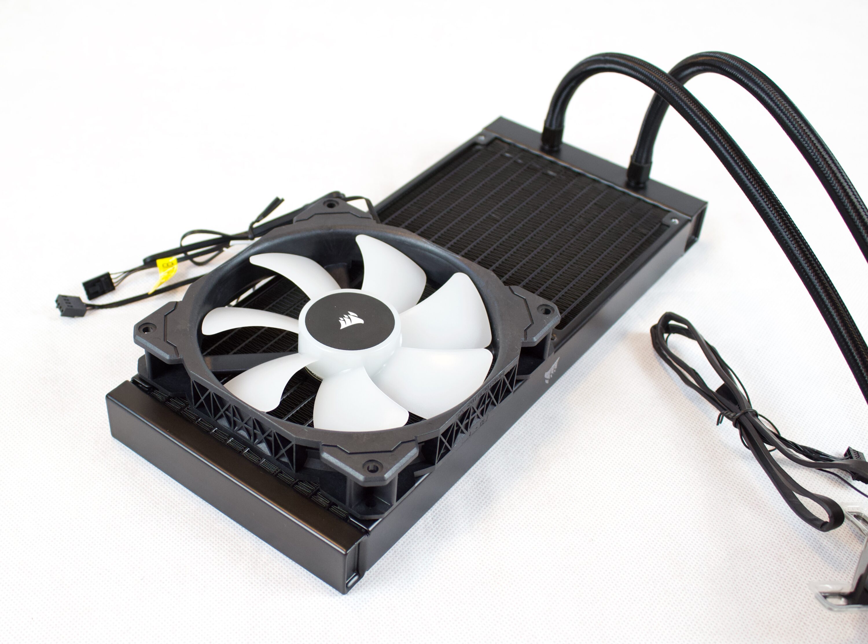 Bis auf die Lüfterblätter ist alles in Schwarz gehalten. Insgesamt kann die Verarbeitung und das Design des AiO-Kühlers vollkommen überzeugen und glänzt mit dem im Lieferumfang enthaltenen Lüfter- und RGB-Controller.