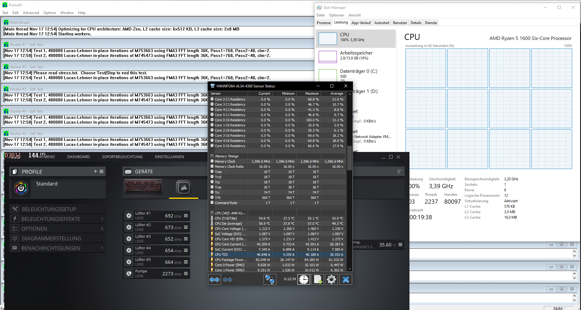 Beim Wechsel auf das Profil „Intensiv“ waren die Erwartungen hoch. Der Temperaturunterschied ist allerdings recht gering. Die Lautstärke der Lüfter nimmt dabei aber deutlich zu. Durchschnittlich lagen hier 1400 RPM an.