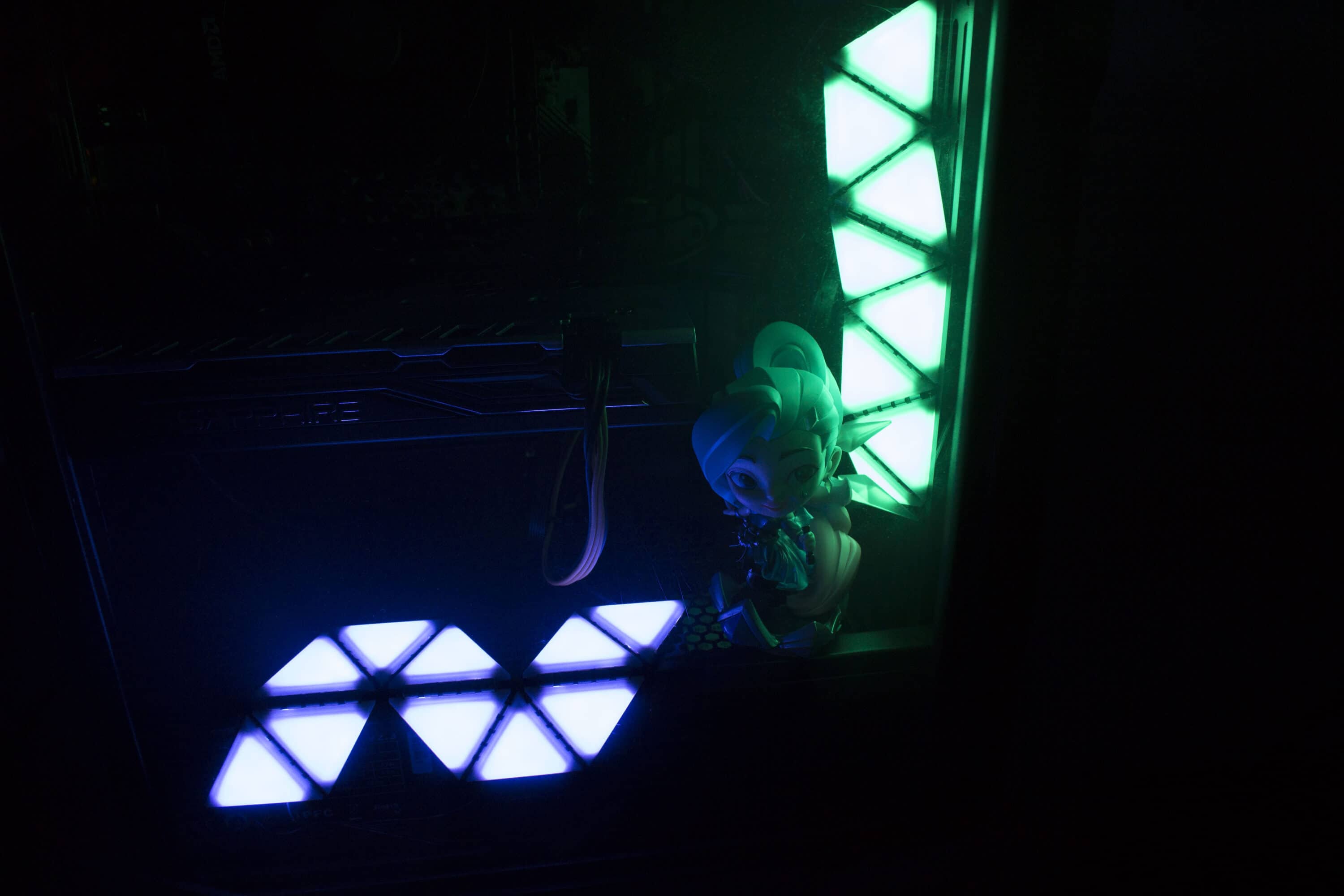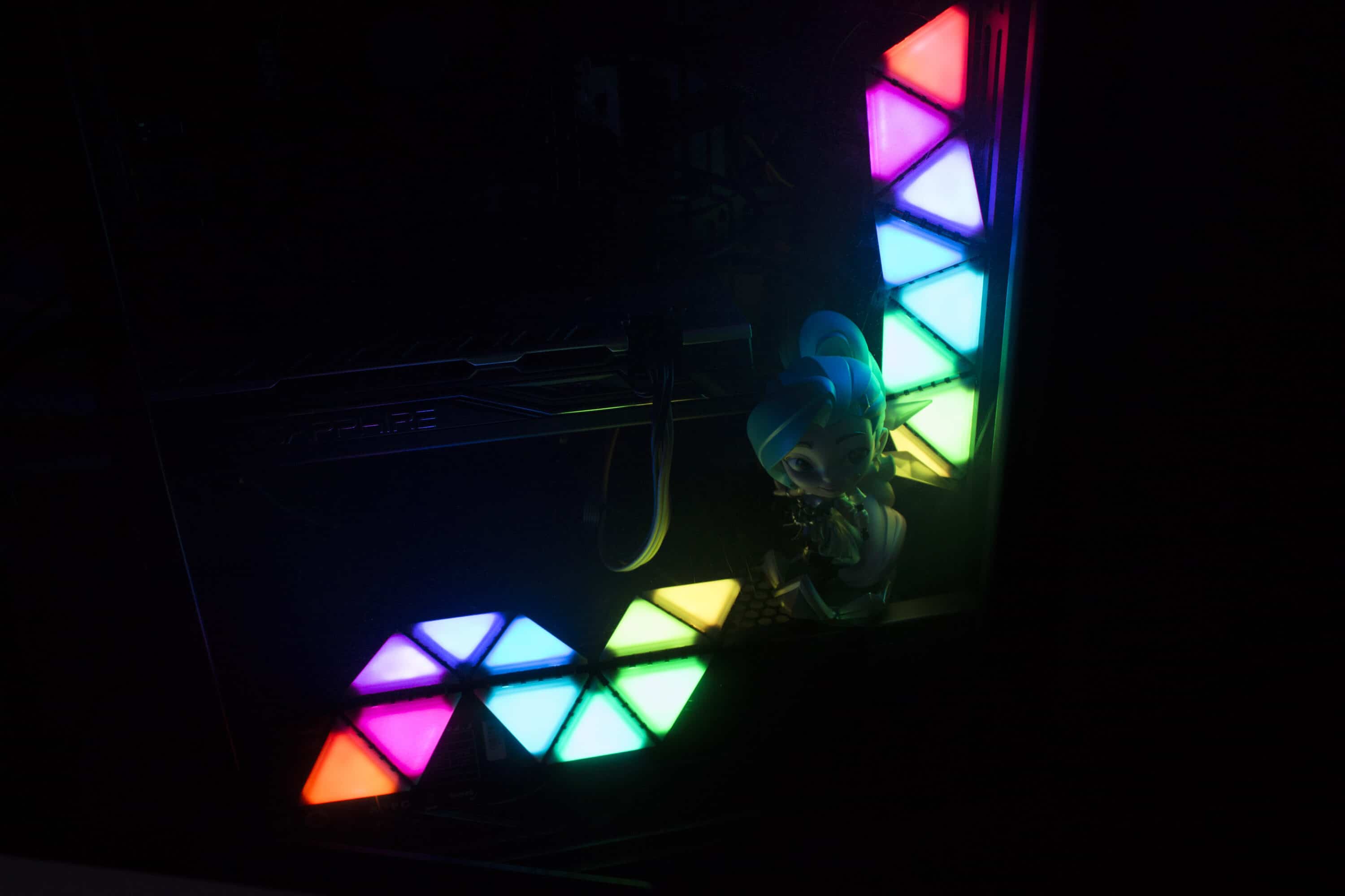 Die LC100 sollen als Stilmittel für die Beleuchtung in eurem PC gelten und nicht die komplette Aufmerksamkeit auf sich ziehen. Erkennbar ist das an der Art der Beleuchtung. Selbst auf der höchsten Stufe leuchten die Dreiecke nicht grell, sondern eher dezent. Gerade blasse Farben, also Pastellfarben, kommen so besser zur Geltung.