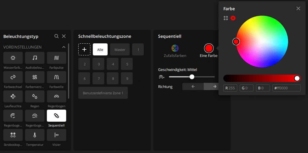Den Beleuchtungseinstellungen setzt Corsair dann gar keine Grenzen. Jedes Dreieck kann frei konfiguriert werden. Egal welchen Effekt ihr verwenden möchtet, ihr könnt es tun. Die Einrichtung kann durch die Bedienung der Software etwas mühselig sein. Mit solch einer Möglichkeit euren PC zu individualisieren, nimmt man sich aber gerne die Zeit.