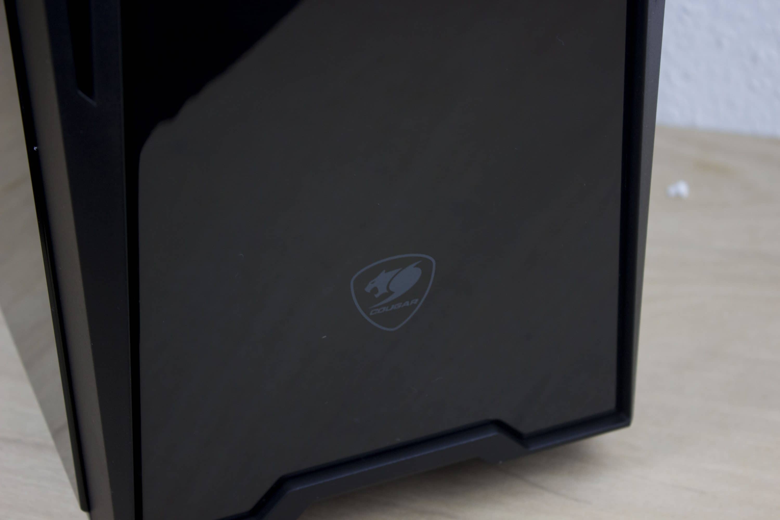 Die quadratische Form und eine herausgestellte Front zeichnen das Design des Turrets aus. Mit Hilfe des „Gaming Vent System“ für besseren Airflow wird die Front aufgelockert und verleiht einen leicht aggressiveren Look. Für noch mehr Abwechslung sorgen die beiden roten Vortex-Lüfter, die direkt hinter der Kunststoff-Front angebracht sind. Auf dem Kunststoff ist außerdem das Cougar-Logo platziert. Die zwei vorverbauten LED-Lüfter mit einer Größe von 120 mm leuchten ausschließlich in Rot. Für Enthusiasten, die ihre LED-Farben an das gesamte Setup anpassen, könnte das schon ein K.O.-Kriterium sein.