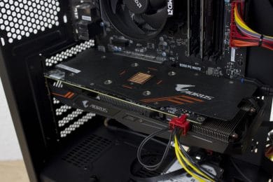 Im Testsystem sind ein Ryzen 5 1400* und eine Gigabyte GTX 1060 mit 6GB von Aorus* verbaut. Auf dem MSI B350 PC Mate Mainboard* sind 16 GB Arbeitsspeicher von Ballistix* gesteckt.