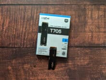 Die Crucial T705 wird in einem kompakten grau blauen Karton geliefert, dessen Design dem der neueren Crucial-Produkte entspricht. Auf der Vorderseite befindet sich ein Bild der schwarzen T705 sowie Informationen zu Kapazität, Schnittstelle, maximaler Übertragungsrate und Garantie. Im Lieferumfang enthalten sind die SSD und eine Kurzanleitung, bei Registrierung der SSD erhält man derzeit zudem einen Monat kostenlosen Zugang zur Adobe Creative Cloud.