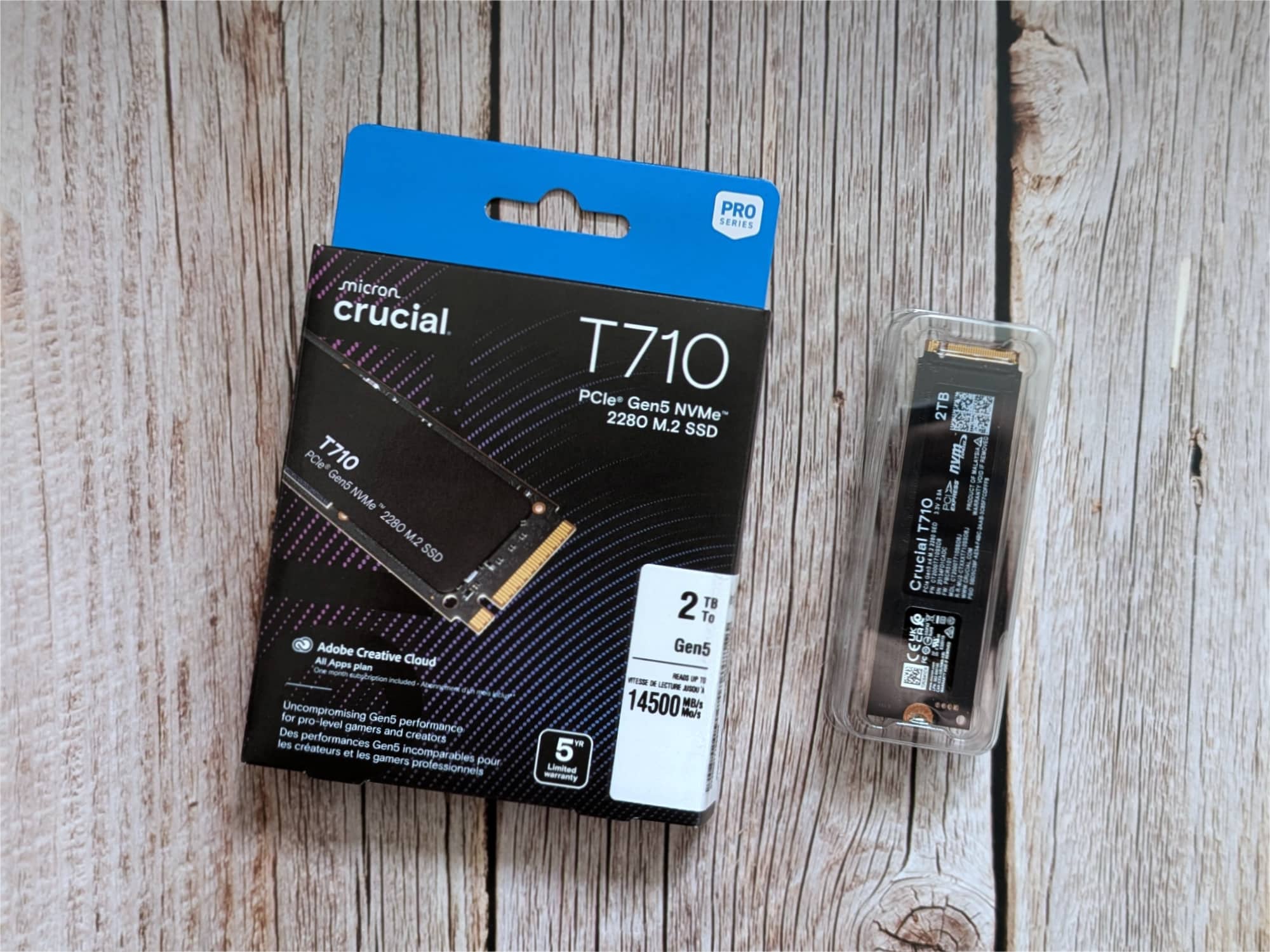 Nachdem wir bereits die PCIe 5.0-SSDs Crucial T705 (Test) und T700 (Test) mit Phisons PS5026-E26-Controller testen konnten, folgt nun eine weitere SSD des Herstellers. Crucial setzt bei der T710 erstmals auf Silicon Motions SM2508-Controller und bietet Übertragungsraten von bis zu 14.900 MB/s beim Lesen und 13.800 MB/s beim Schreiben. Damit zählt sie aktuell zu den schnellsten erhältlichen SSDs. Die SSD ist wie die T705 und die T700 mit einer Kapazität von bis zu 4 TB sowie mit und ohne Kühlkörper erhältlich. Im folgenden Test sehen wir uns das 2 TB-Modell der Crucial T710 ohne Kühlkörper genauer an.