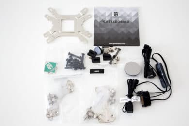 Bei Design und Verarbeitung bleiben bei der Deepcool Castle 280EX keine Wünsche offen. Alle Komponenten sind sauber verarbeitet und lackiert. Durch den Einsatz von neutralen Farben in Kombination mit den schicken RGB-Effekten eignet sich diese Kompaktwasserkühlung für fast jedes Farbschema