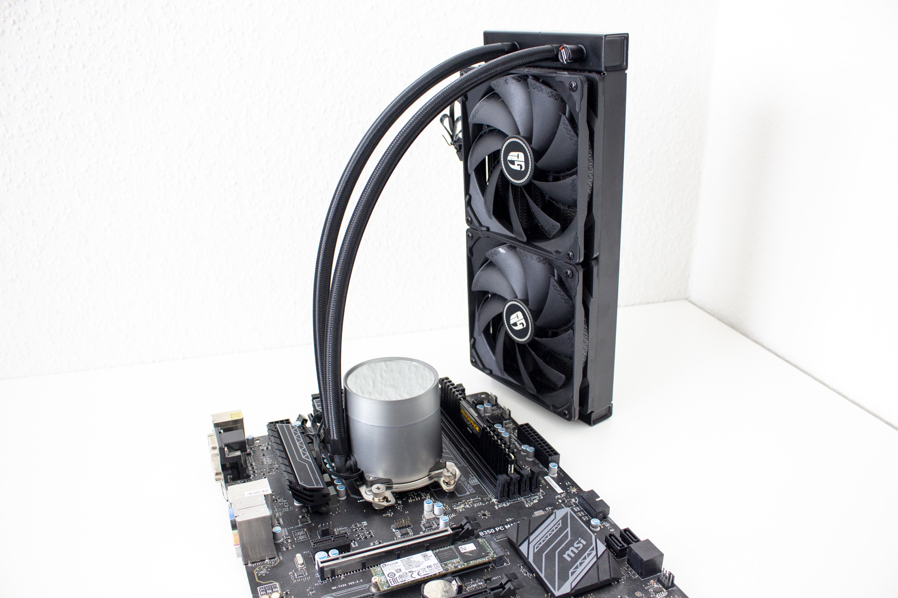 Wie bereits im vorherigen Kapitel aufgezeigt, verwenden wir als Testhardware ein AM4-System auf Basis des Ryzen 5 1400 und dem MSI B350 PC Mate. Der Ryzen läuft auf 3,8 GHz bei 1,25 Volt.