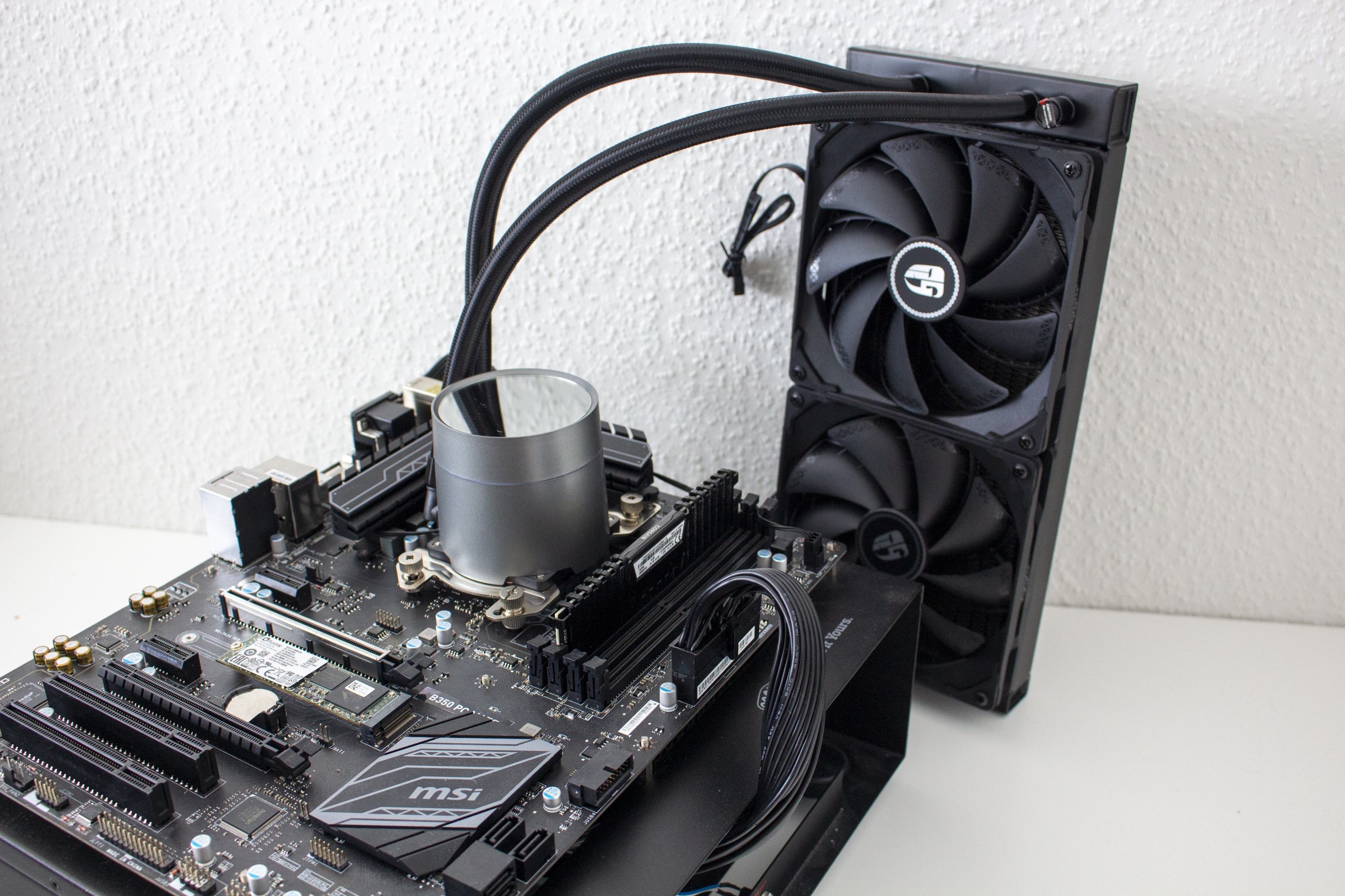 Für das Review kommt ein Testsystem auf einem Benchtable zum Einsatz. Dadurch können wir Störfaktoren wie zum Beispiel einen Hitzestau im Gehäuse ausschließen. Das Testsystem besteht aus den folgenden Komponenten: