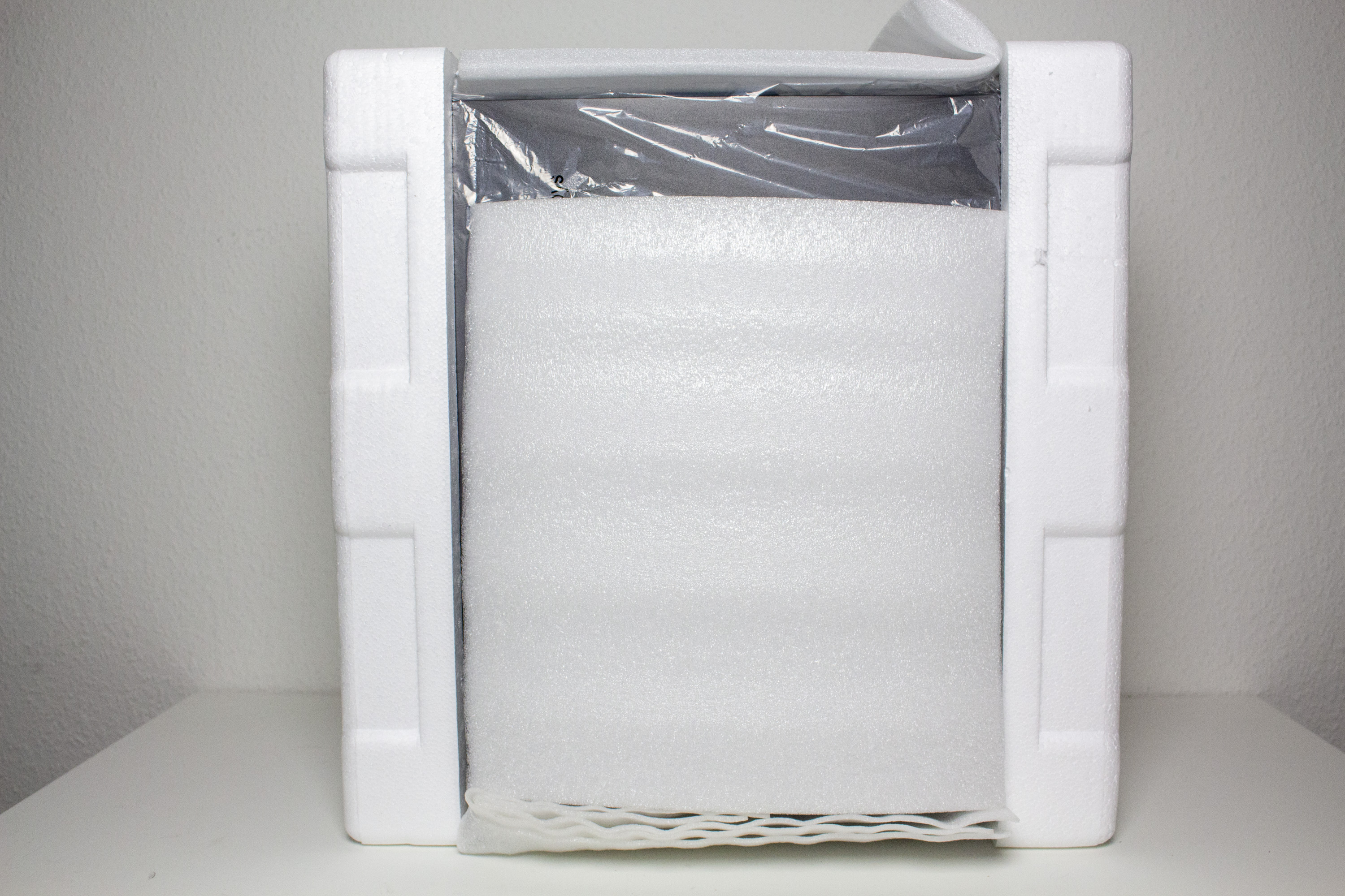 Bei der Verpackung lässt sich DeepCool auf keine Spielchen ein und bleibt sich selbst treu. So wurde der überwiegend braune Karton mit einigen türkisen Farbelementen bedruckt und zudem mit einem Aufkleber versehen. Der farbige Aufkleber zeigt ein Bild des Gehäuses und die wichtigsten technischen Daten zum Tower. Im Karton hat DeepCool den Tower in zwei normale Styropor-Blöcke und zusätzliche Schaumstoffmatten gehüllt. Diese Vorkehrungen dürften mögliche Beschädigungen beim Transport gut verhindern. Sämtliches Montagezubehör hat DeepCool in einem Beutel innerhalb des Gehäuses platziert. Dieser beinhaltet alle notwendigen Schrauben, einige Kabelbinder, eine Montageanleitung sowie einen ARGB-Adapter für die Ansteuerung der RGB-Platine über das Mainboard.