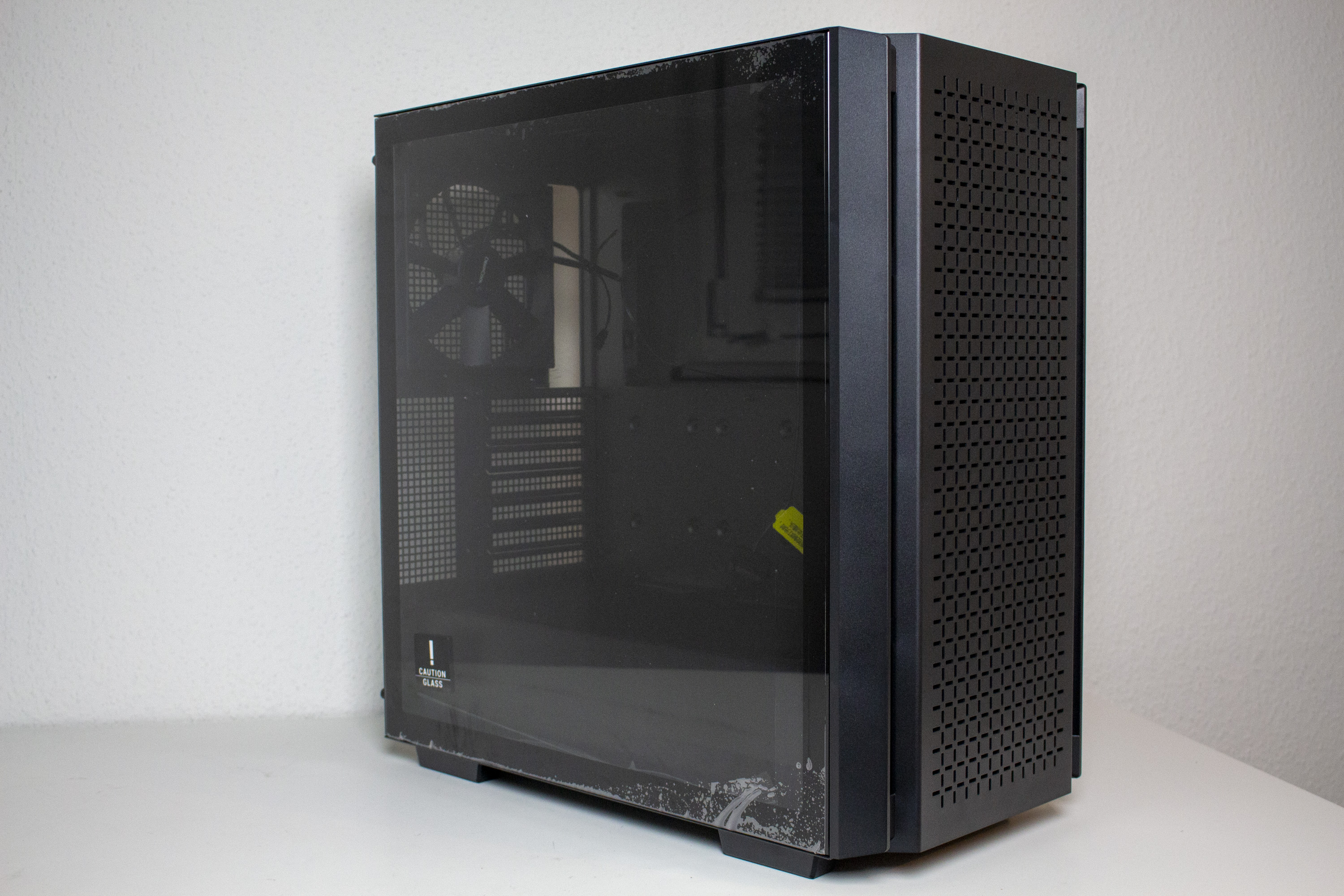 Die äußere und innere Verarbeitungsqualität sind überwiegend auf einem guten bis sehr gutem Niveau. So sind durchweg keine scharfen Kanten oder Lackierungsfehler erkennbar. Gleiches gilt für die Materialqualität. Lediglich die Materialstärke des rechten Seitenteils und das doch sehr billig wirkende Frontpanel aus dünnem Kunststoff trüben das Gesamtergebnis etwas.