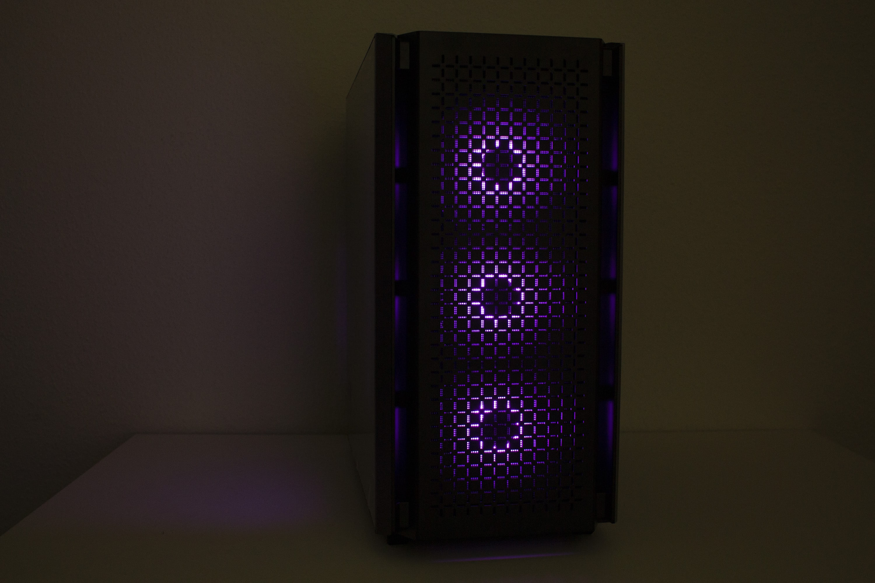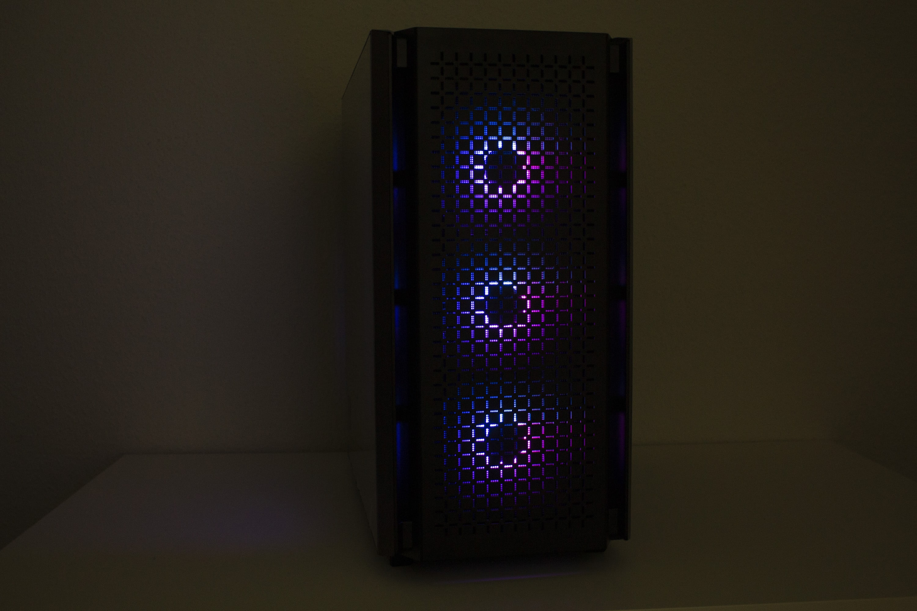 Die Beleuchtungseffekte hat DeepCool im CG560 über die drei RGB-Lüfter in der Front realisiert. Diese sind digital adressierbar und werden über eine kleine Steuerplatine auf der Rückseite des Mainboard-Trays gesteuert. Diese Steuerplatine hat zahlreiche integrierte Modi und Farben fest eingespeichert. Das Wechseln der Farben erfolgt dann über den Knopf im I/O-Panel. Verfügt das eingebaute Mainboard über einen 5V-ARGB-Header mit 3-Pins, lässt sich die Platine alternativ auch direkt mit dem Mainboard verbinden und über die üblichen Softwarelösungen adressieren. Die Verbindung zwischen der Platine und den ARGB-Lüftern erfolgt jedoch über proprietäre Anschlüsse. Möchte man also weitere Lüfter anschließen, dann geht das nur mit Lüftern aus dem DeepCool-Portfolio. Abschließend noch ein paar Impressionen der aktiven Beleuchtung.