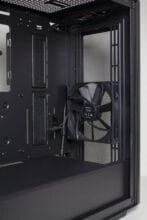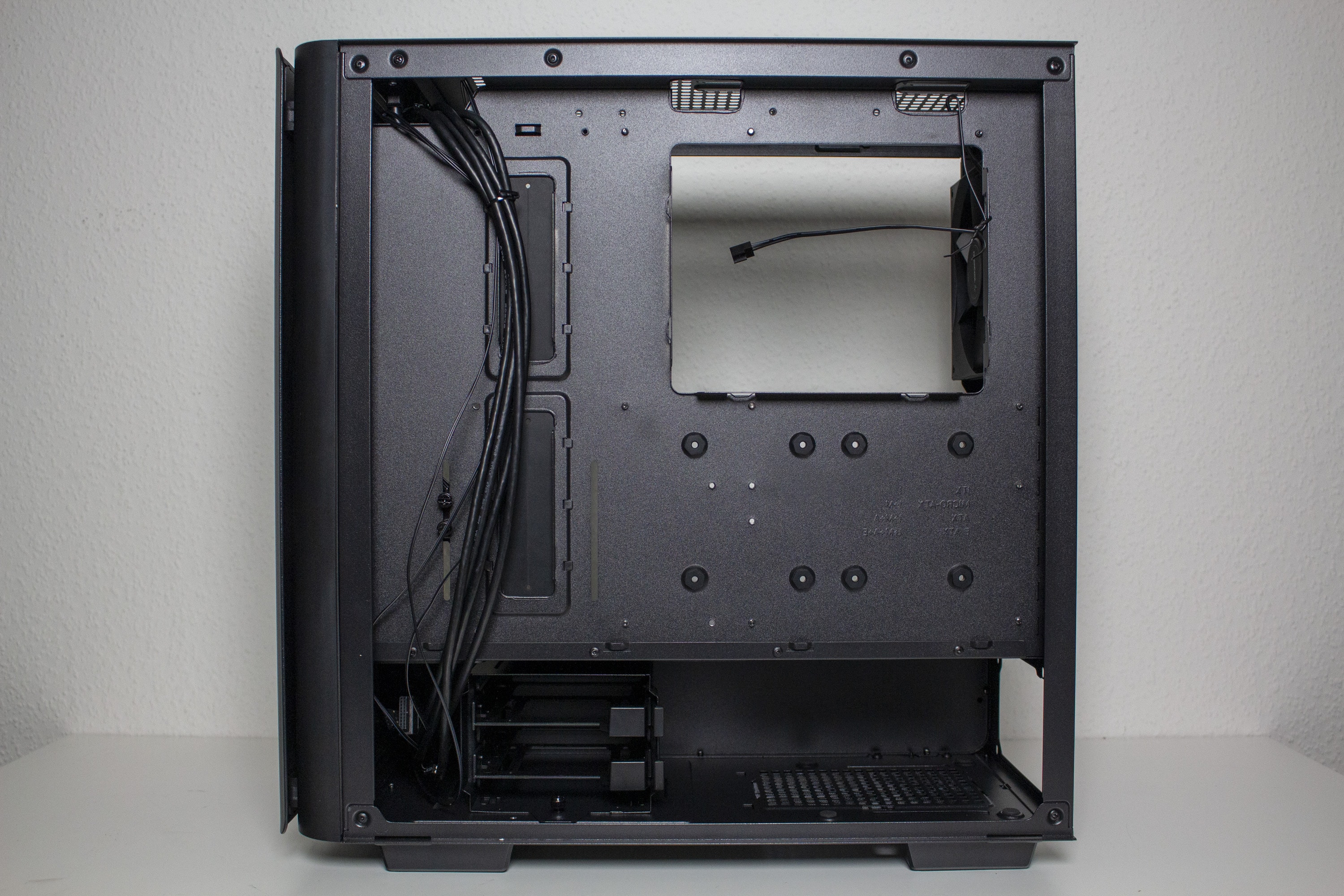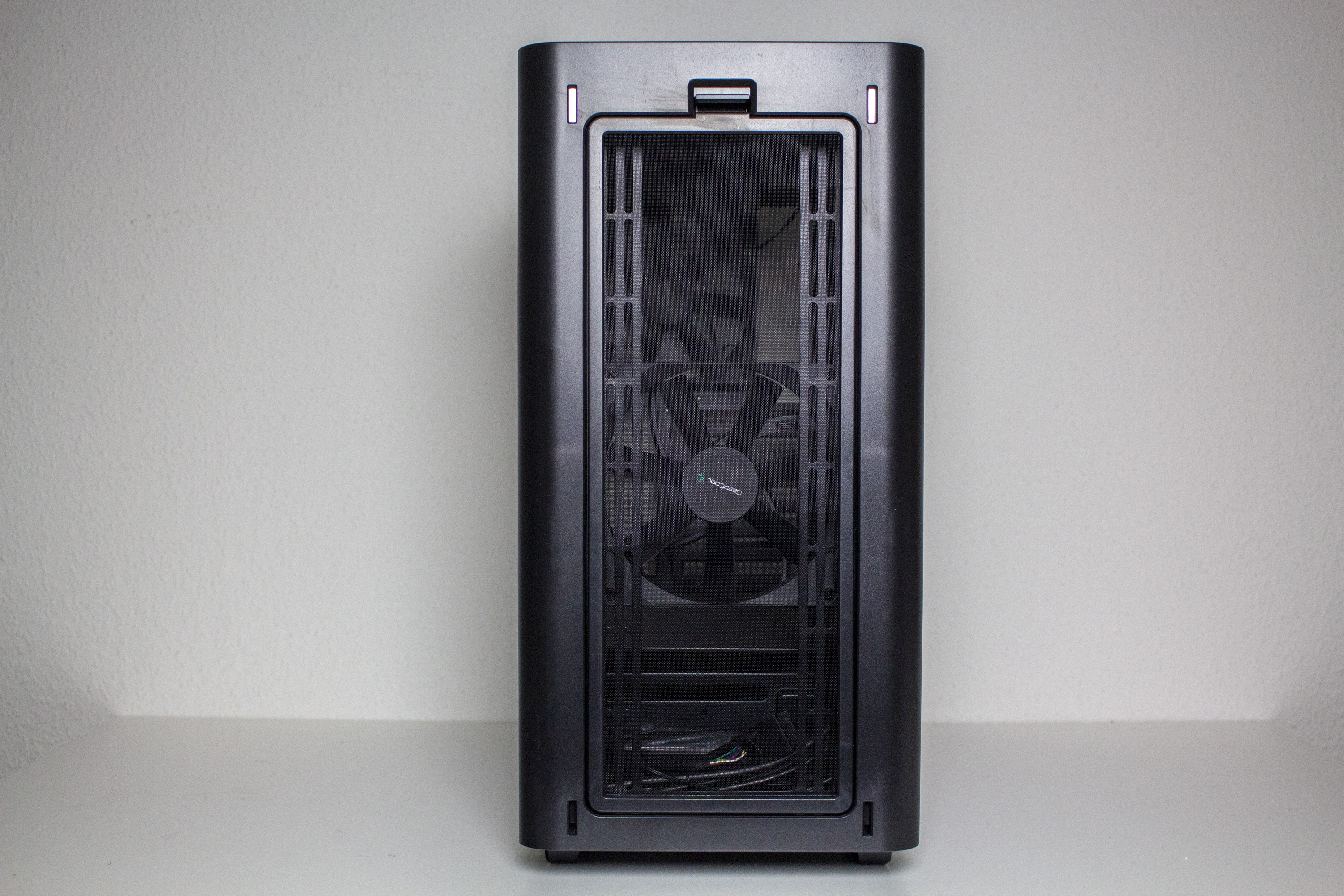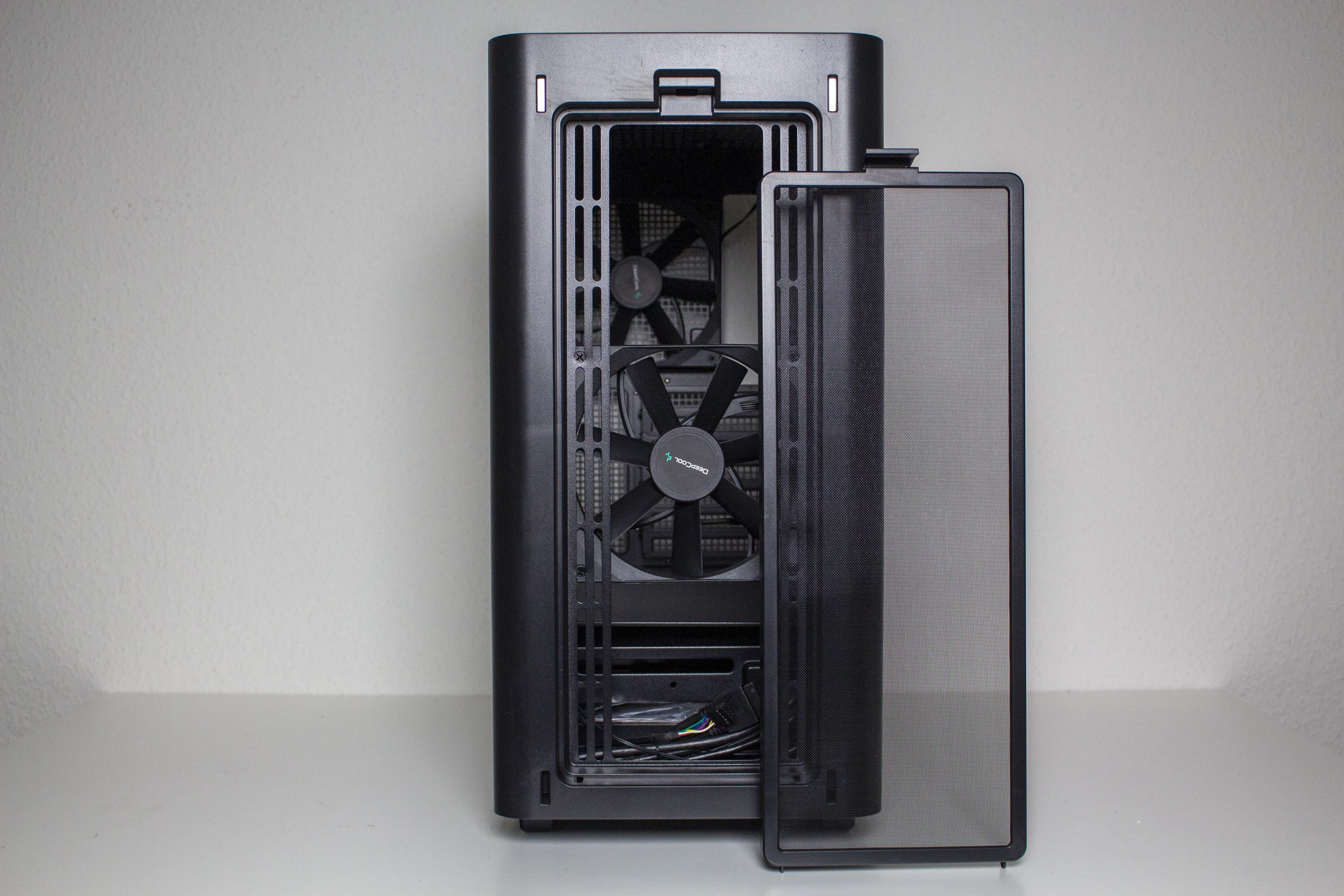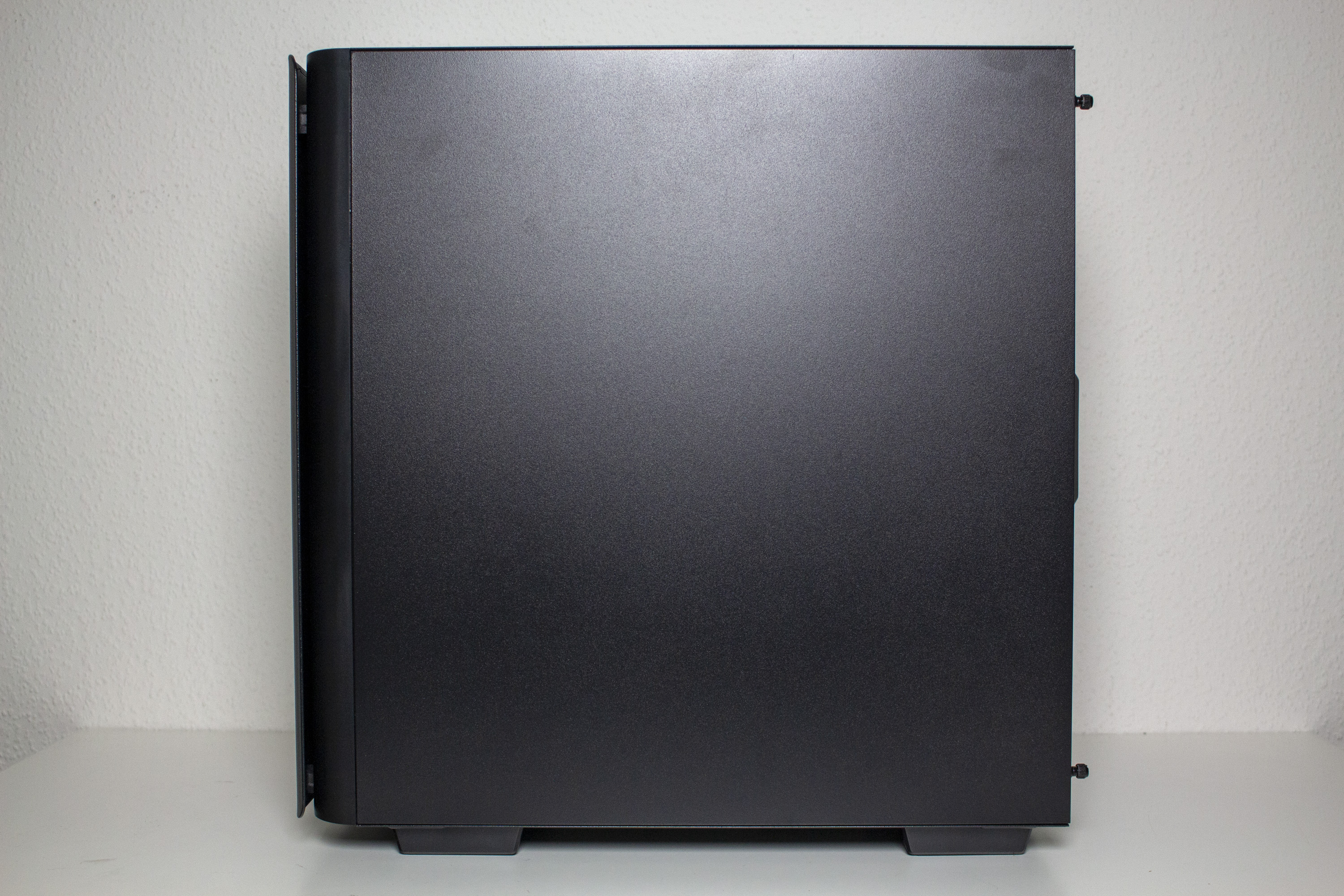 Zurückstecken muss man als Käufer in diesem Fall aber bei den RGB-Effekten und der gebrachten Kühlleistung. So fallen die Temperaturen des Systems durch die geschlossene Front höher aus. Außerdem wirkt die Stahlplatte an der Front zwar solide, der Befestigungsmechanismus über Magneten hat aber gewisse Schwächen. Bewegt man das Gehäuse, wackelt die Platte leicht hin und her. Auch die Materialstärke des rechten Seitenteils könnte für die anvisierte Preisklasse durchaus besser sein.